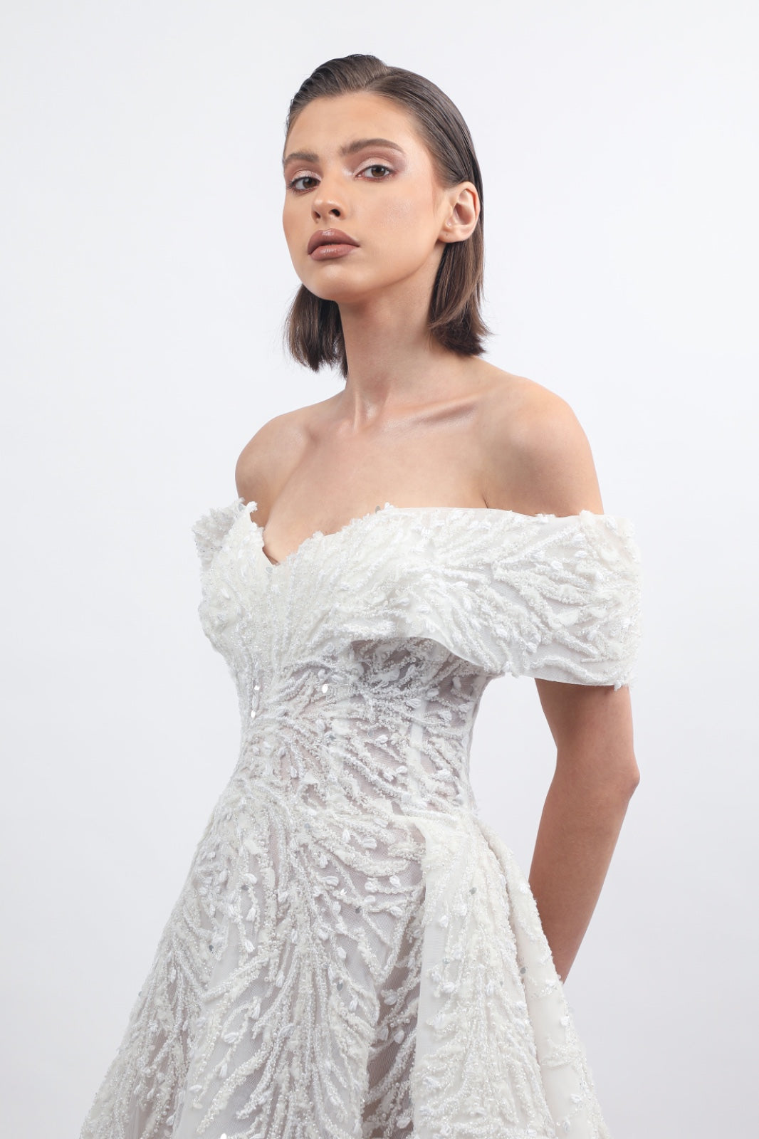Hand-Embroidered Off-Shoulder Tulle Gown