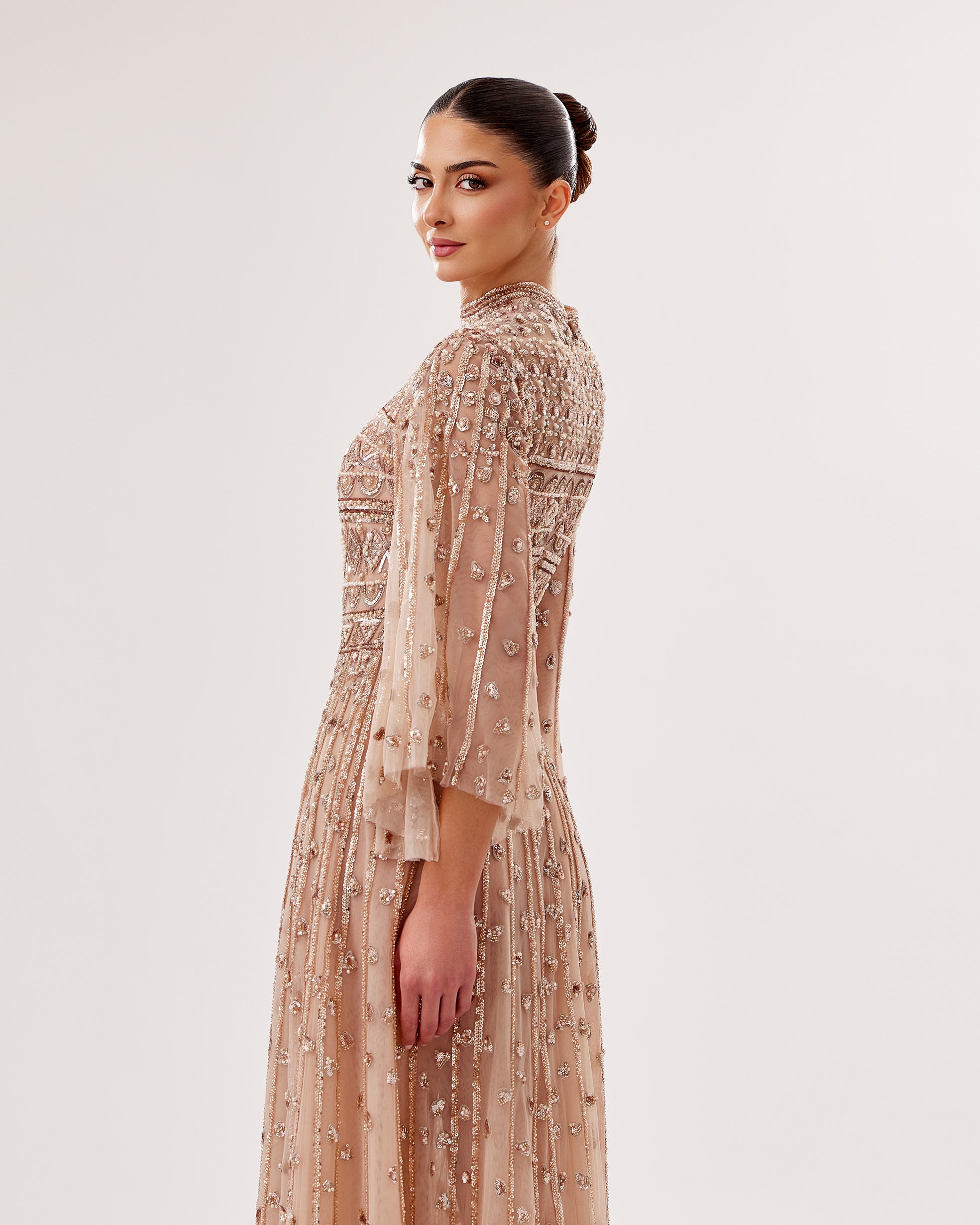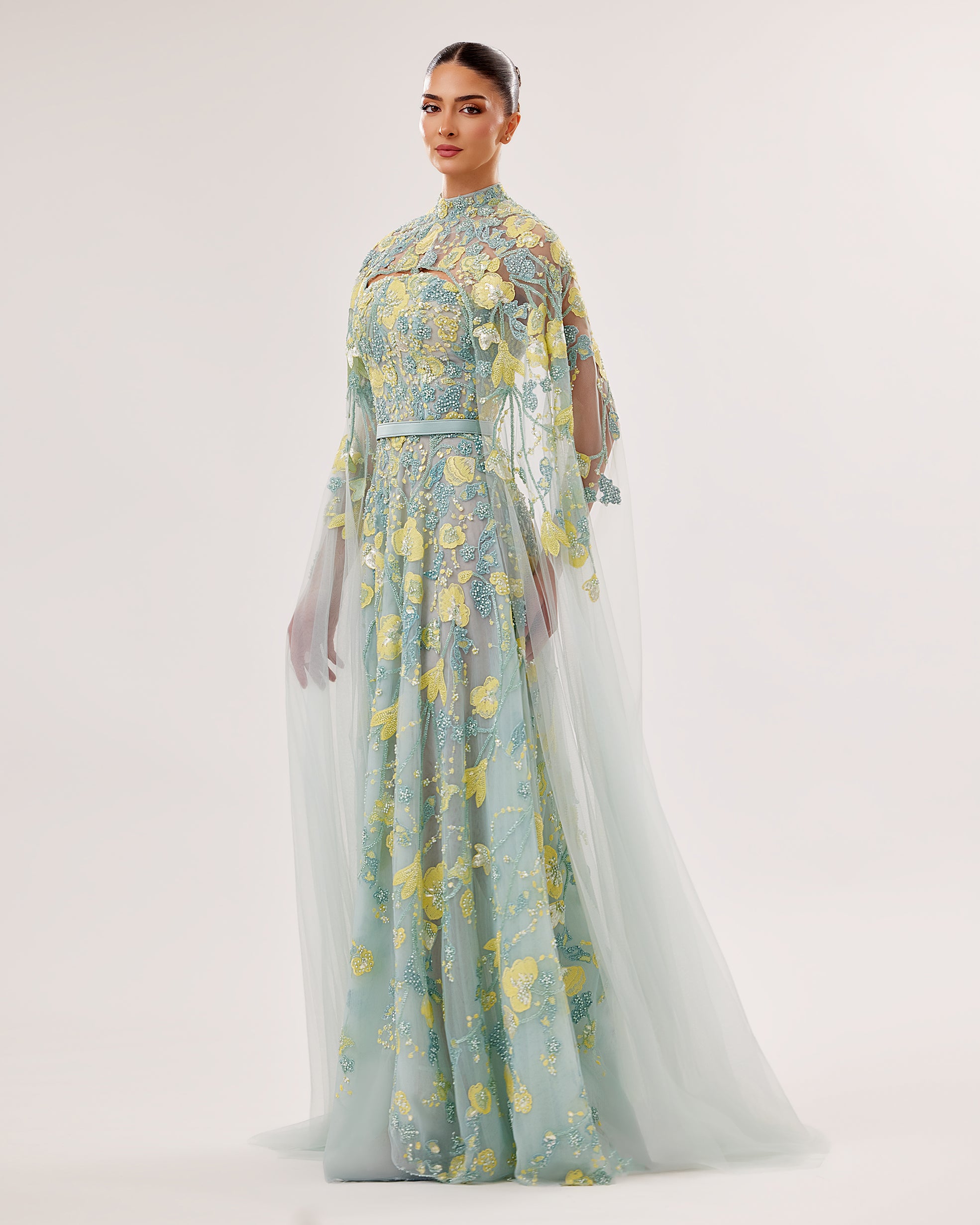 Fully Embroidered Tulle Gown with Cape