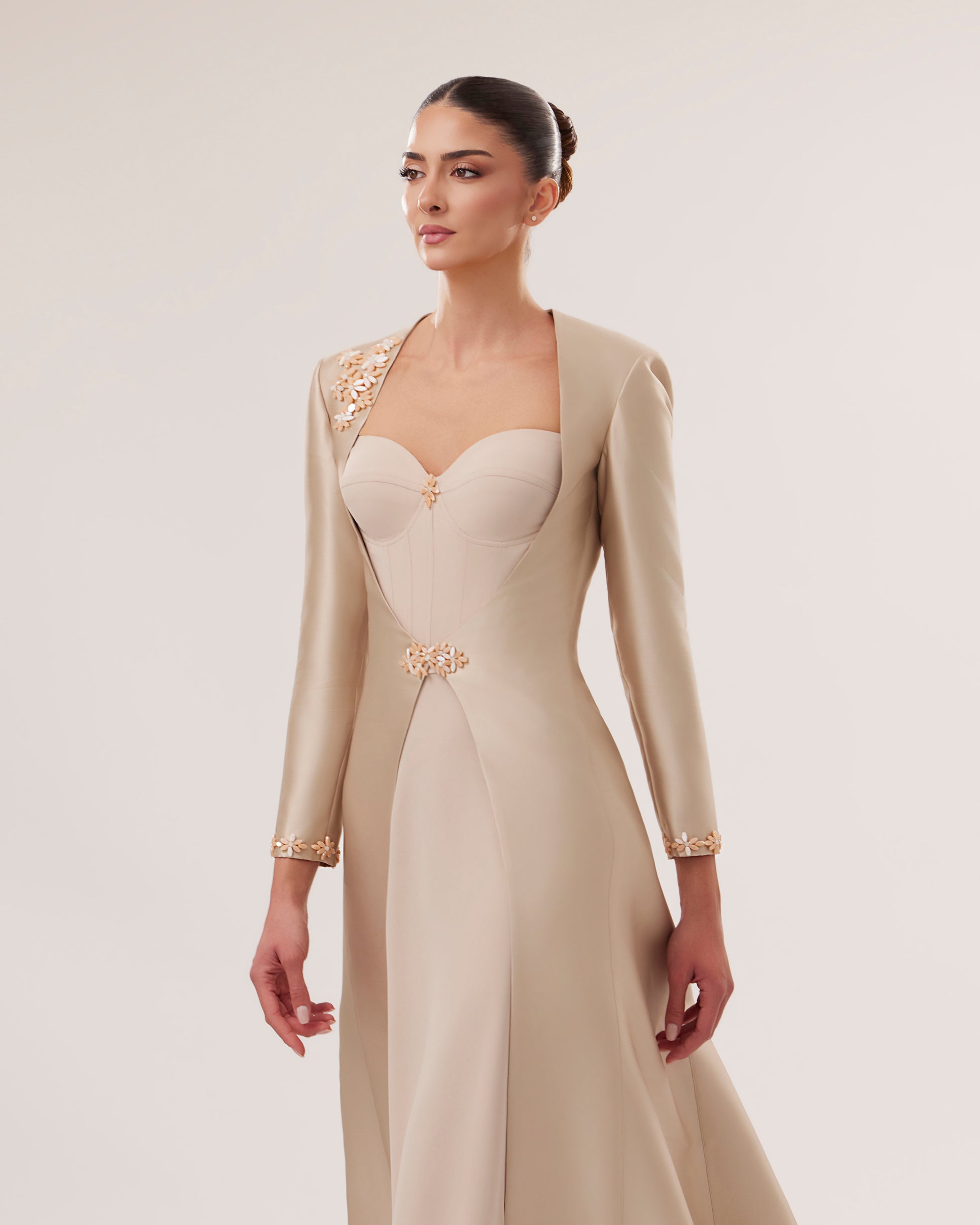 Crepe Sweetheart Gown with Mikado Embroidered Jacket