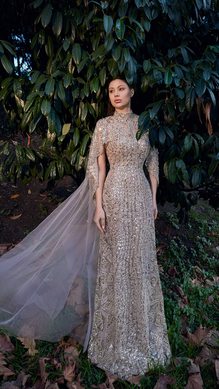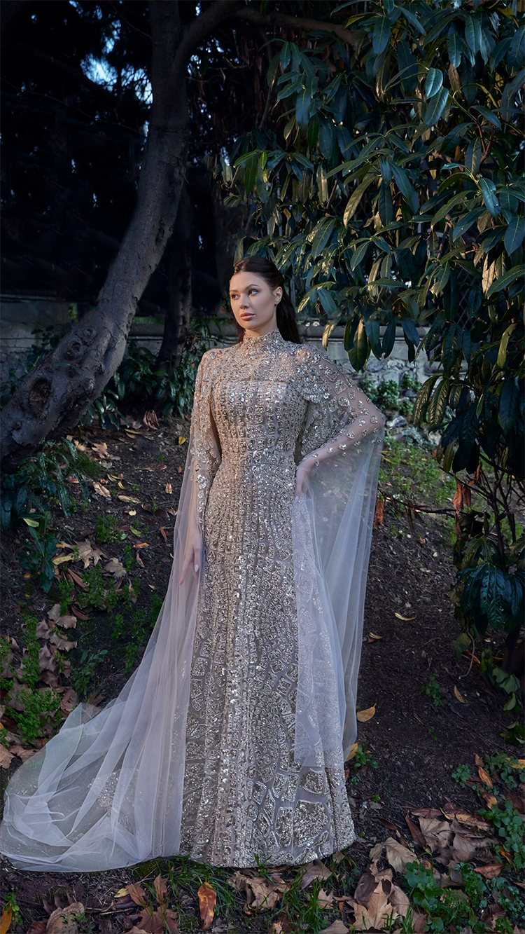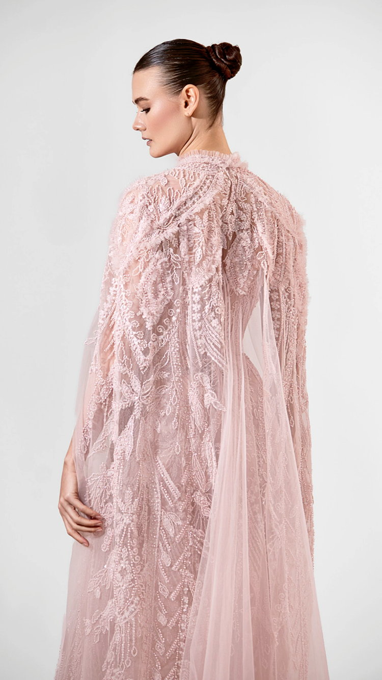 Fully Embroidered Gown with Long Embroidered Cape | 965