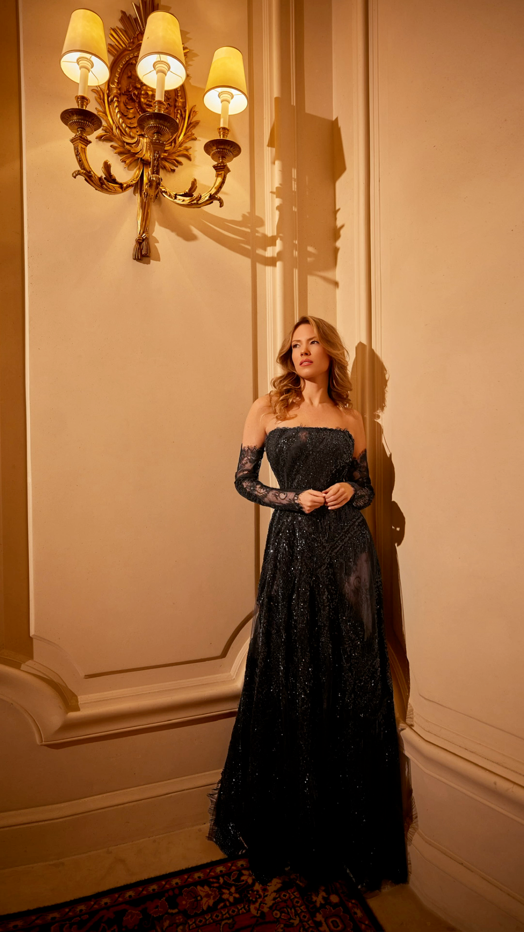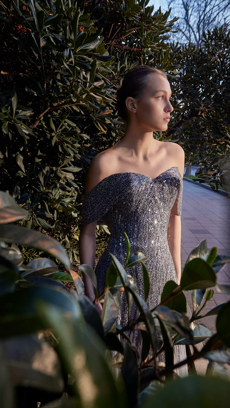Strapless Sequin Gown with Glove Sleeves | 1000