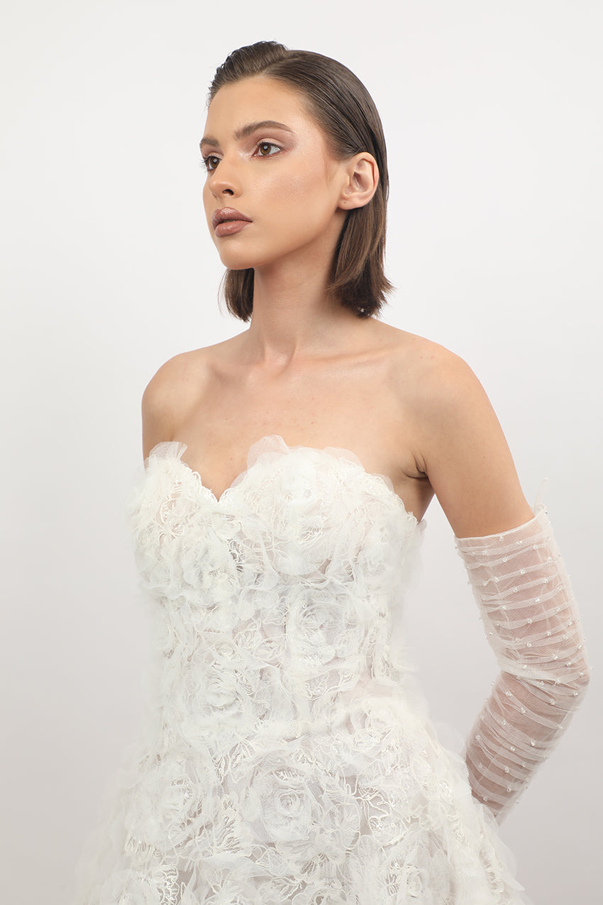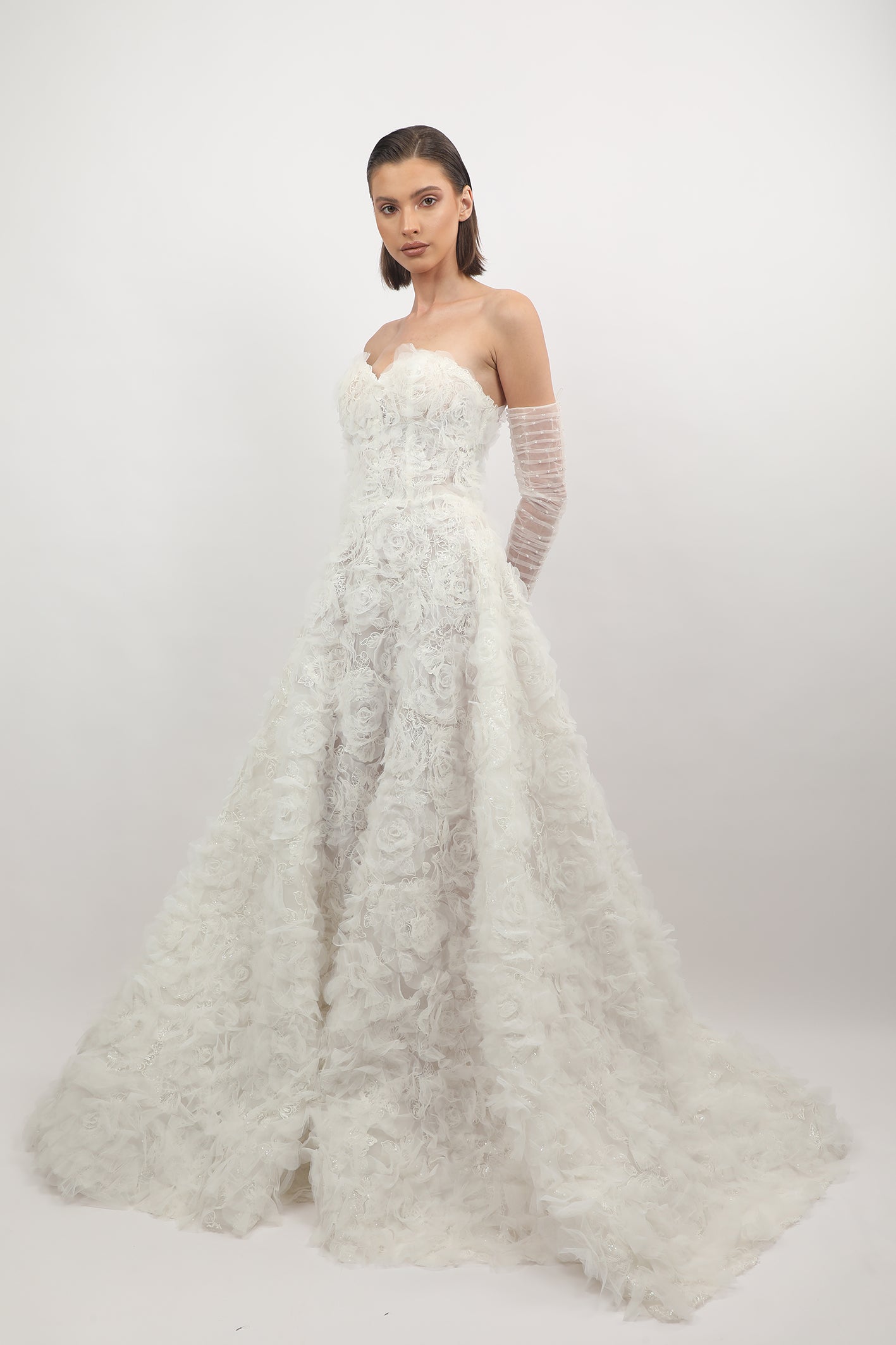 Sweetheart Ruffled Tulle Gown with 3D Flowers