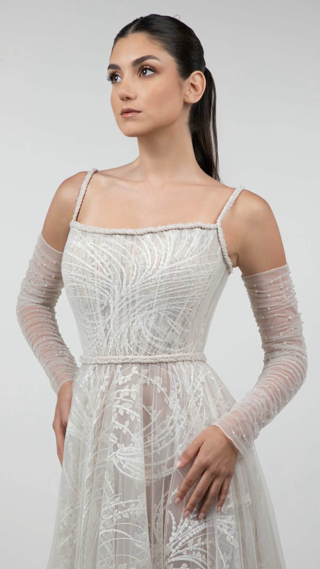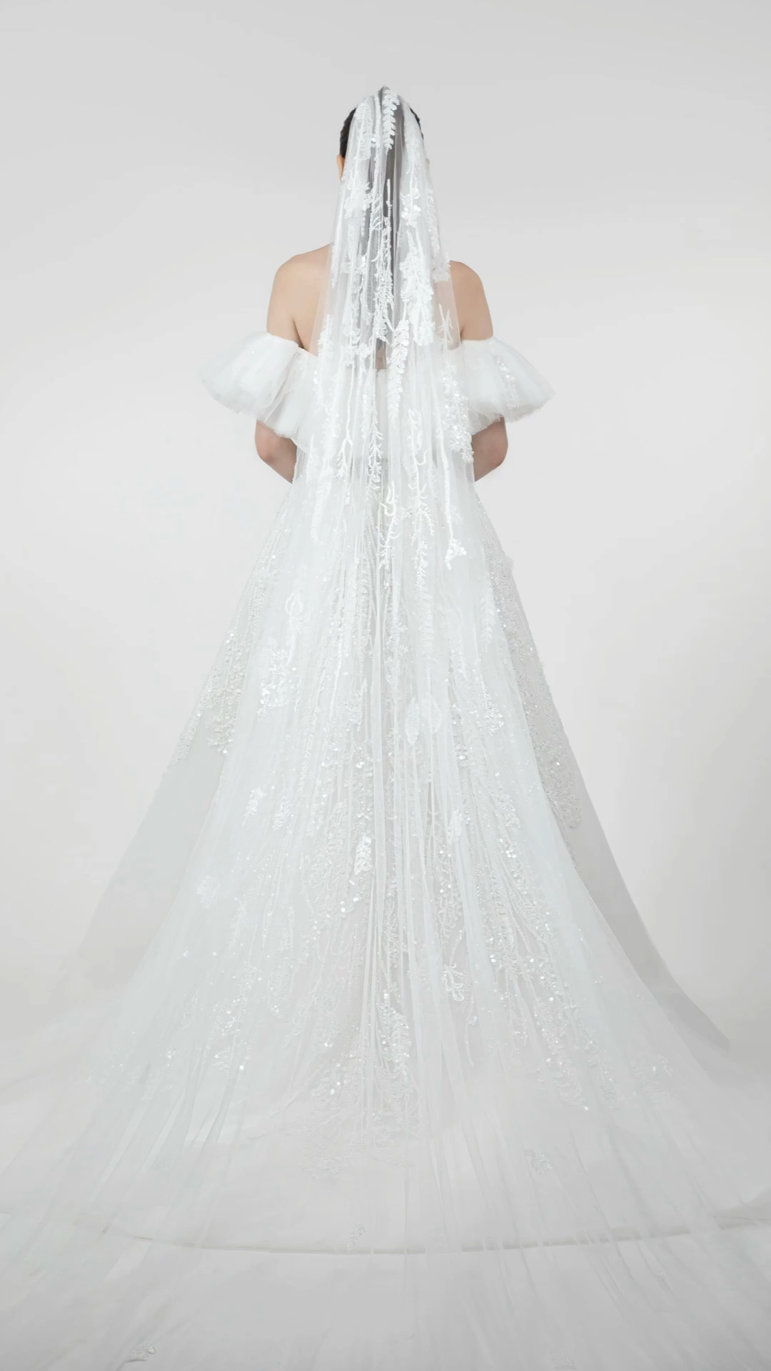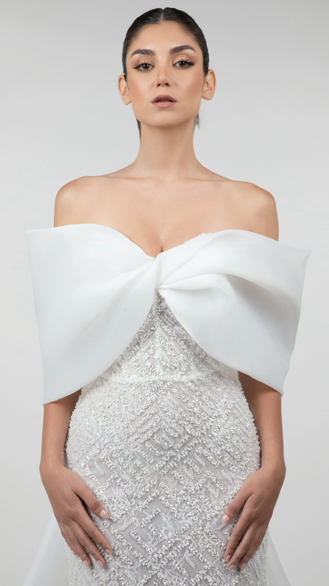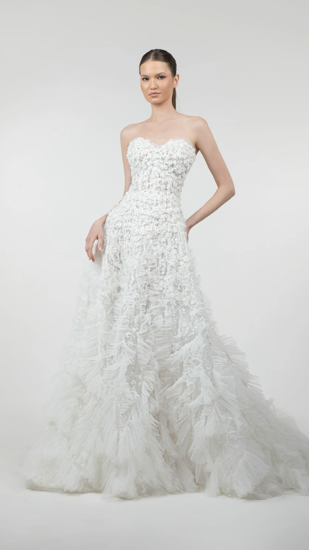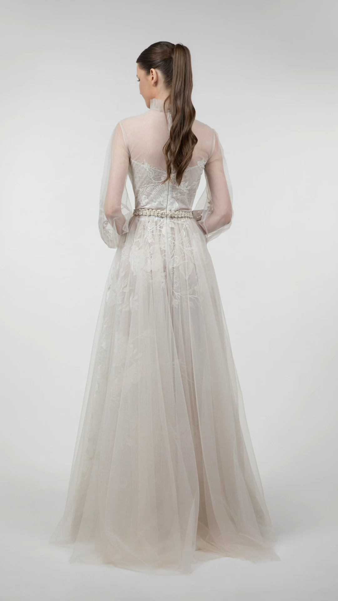 Off-Shoulder A-Line Gown with Pleated Tulle