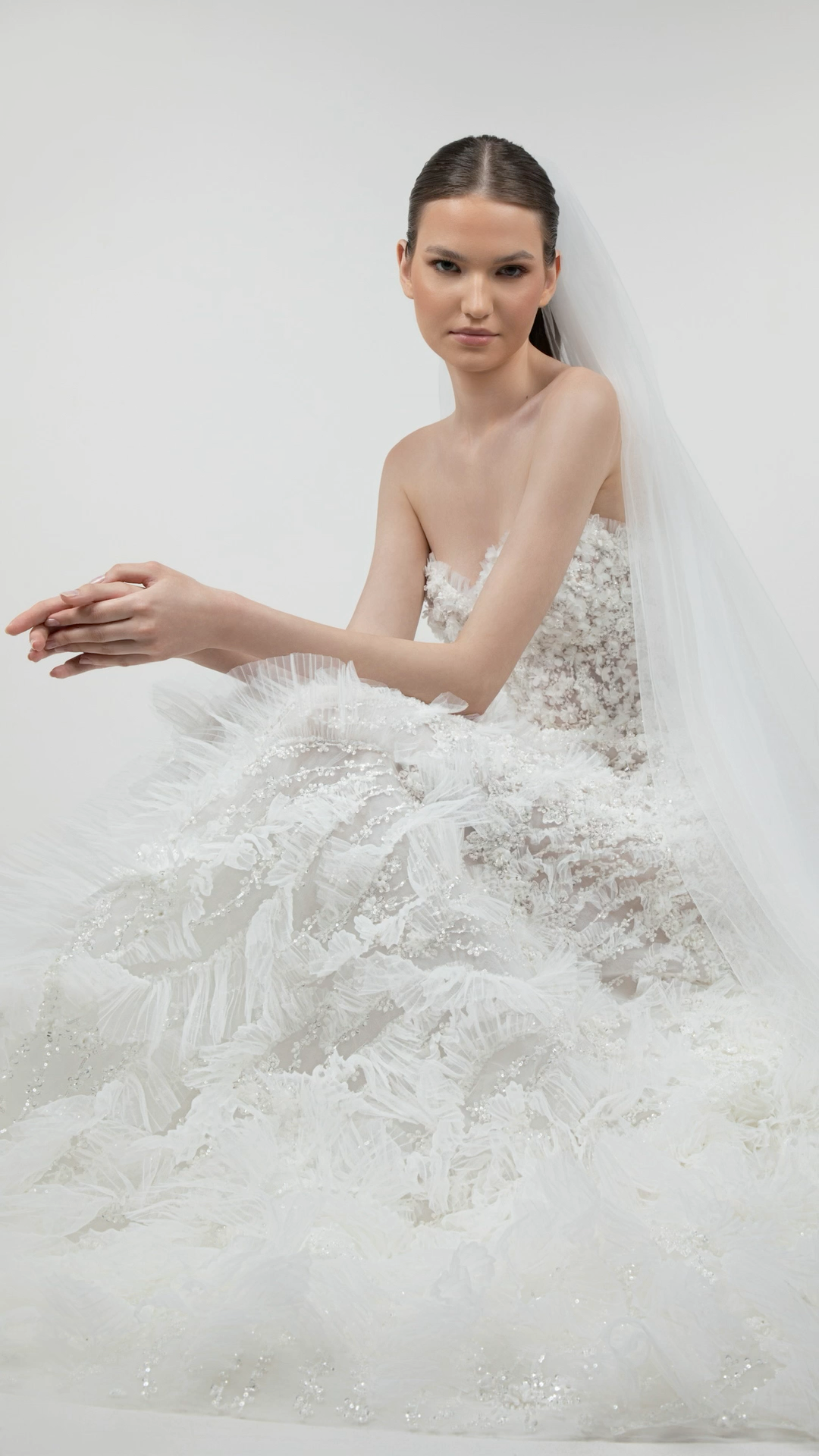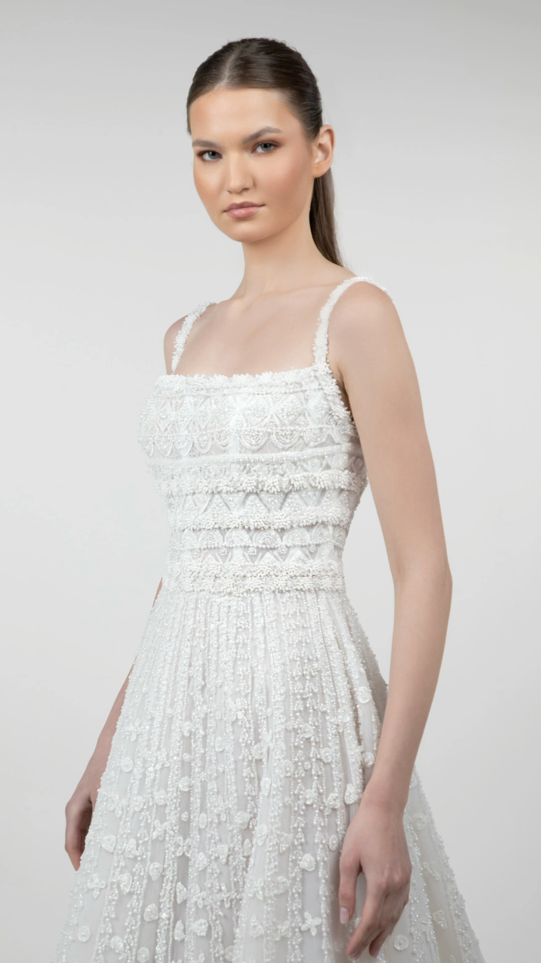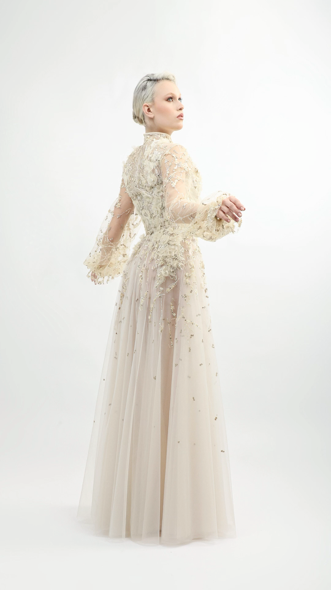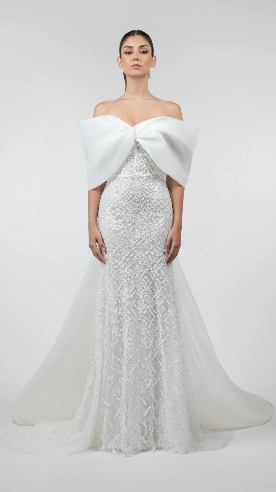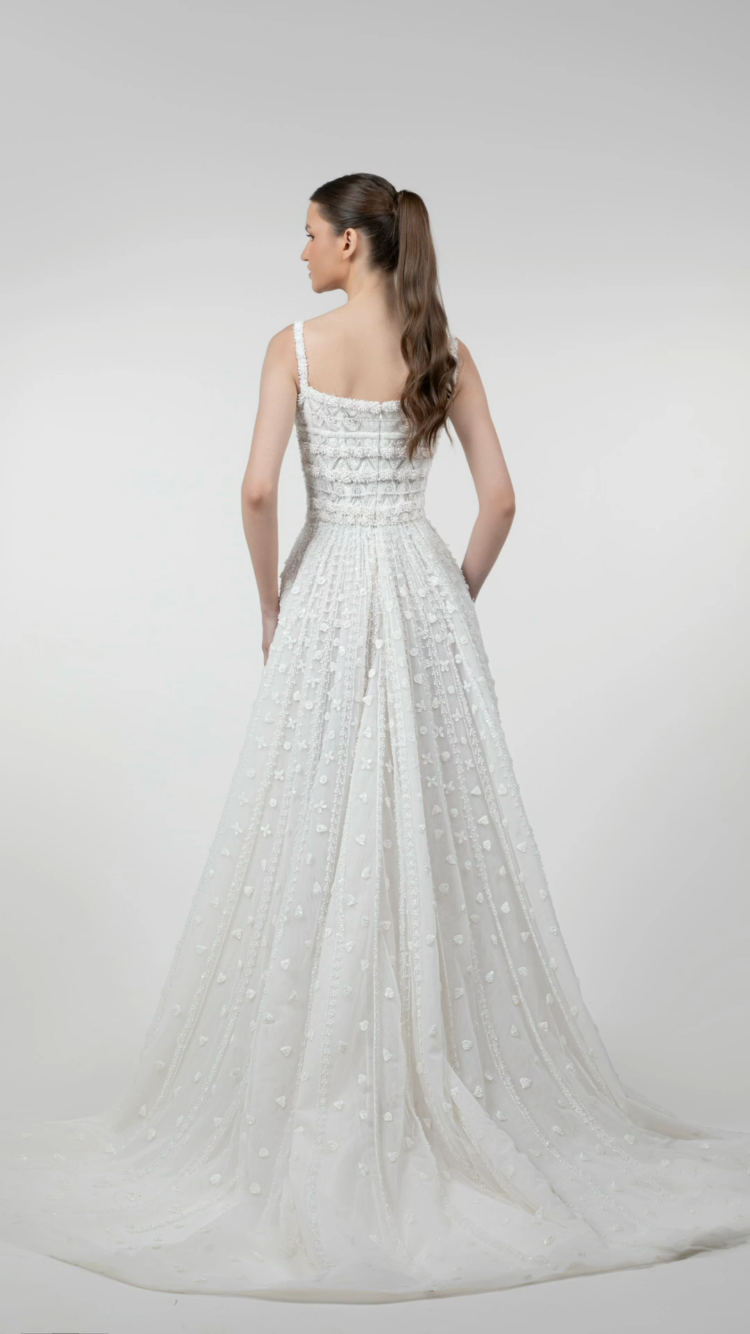 Off-Shoulder A-Line Gown with Pleated Tulle
