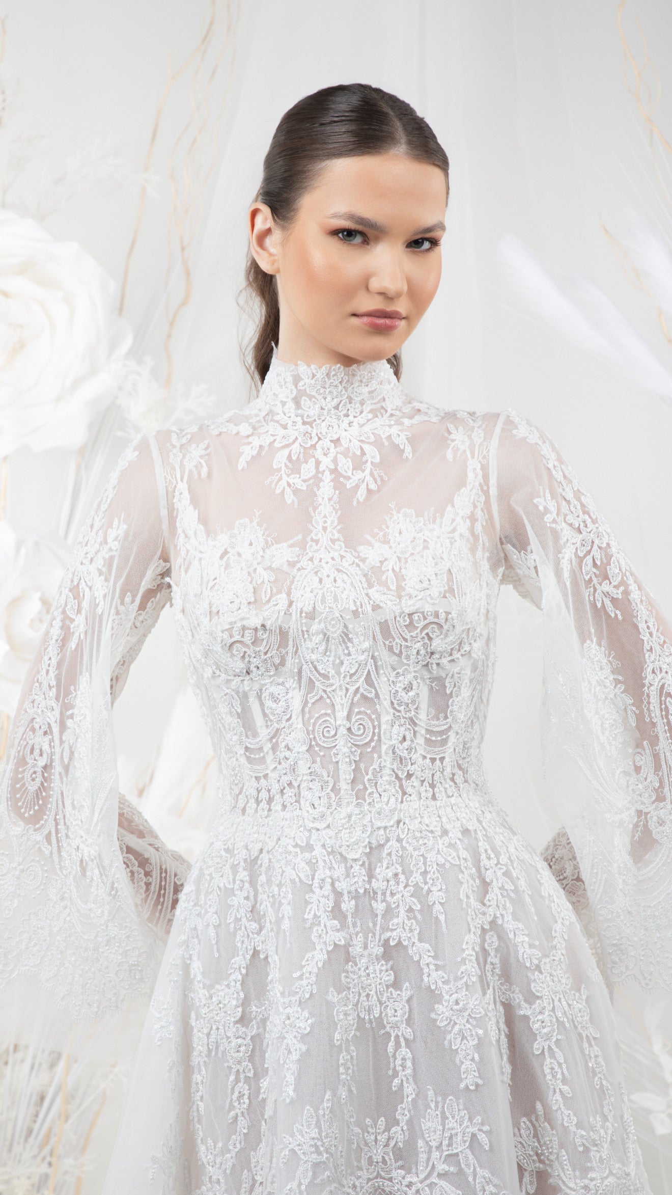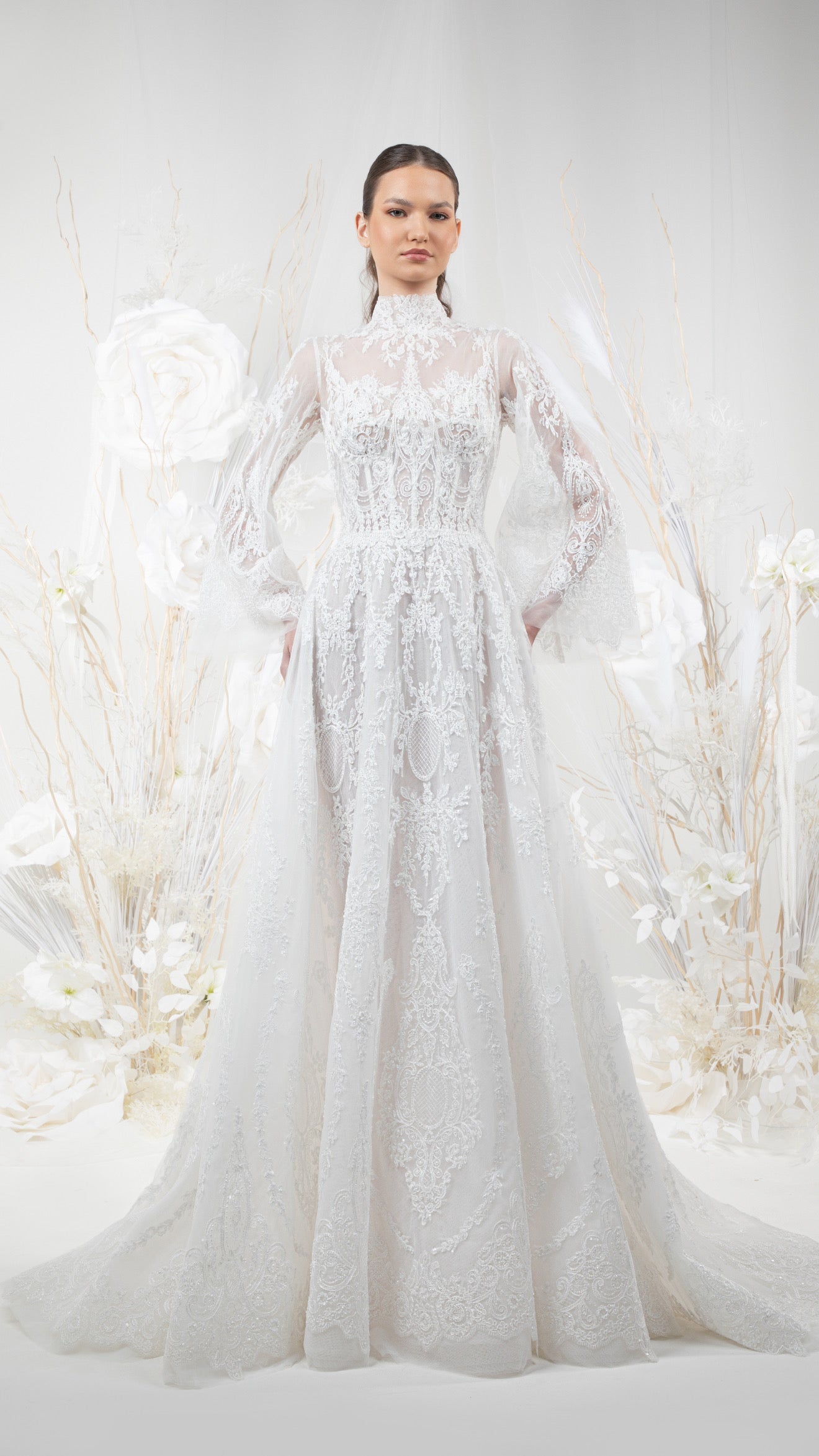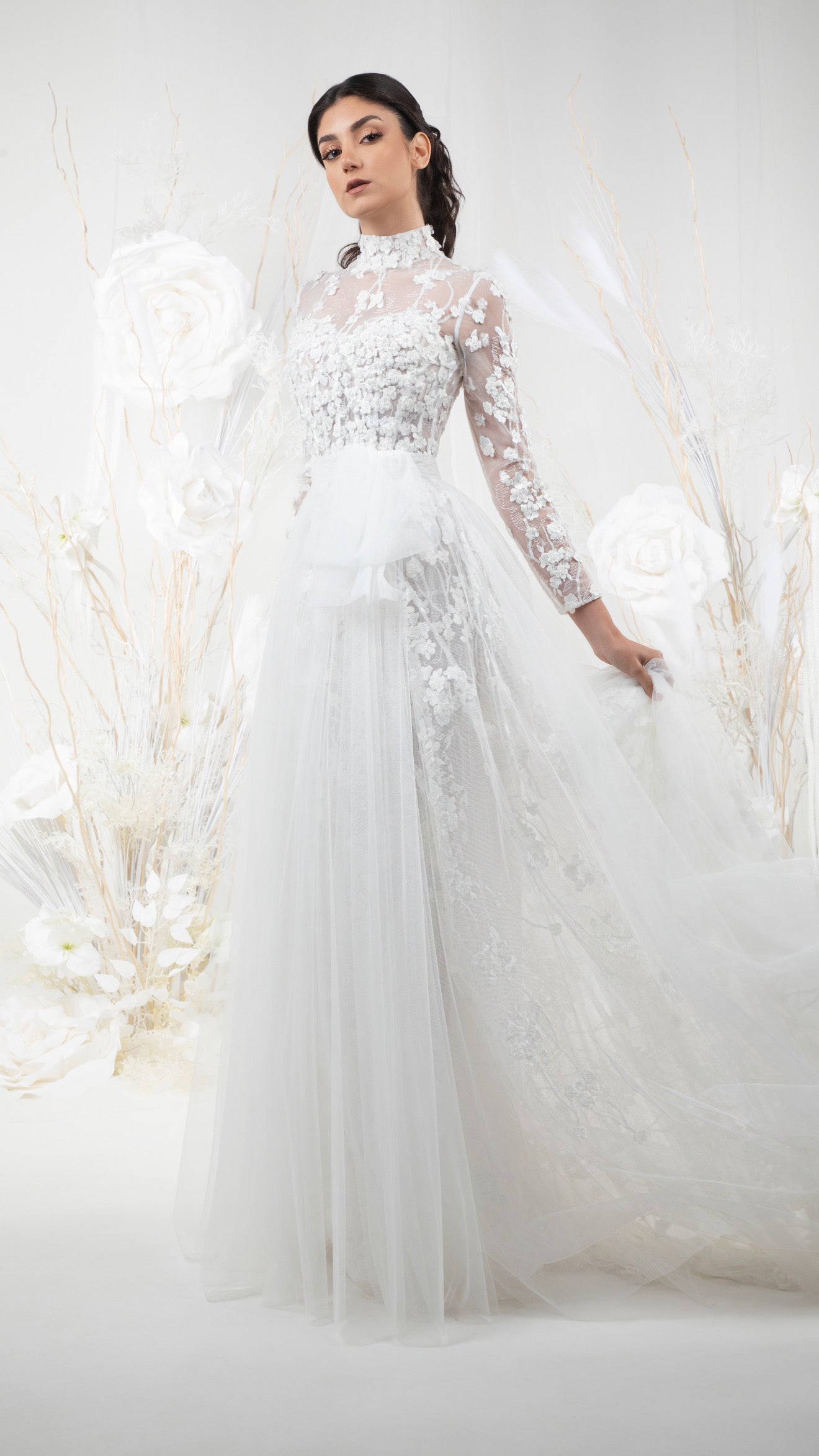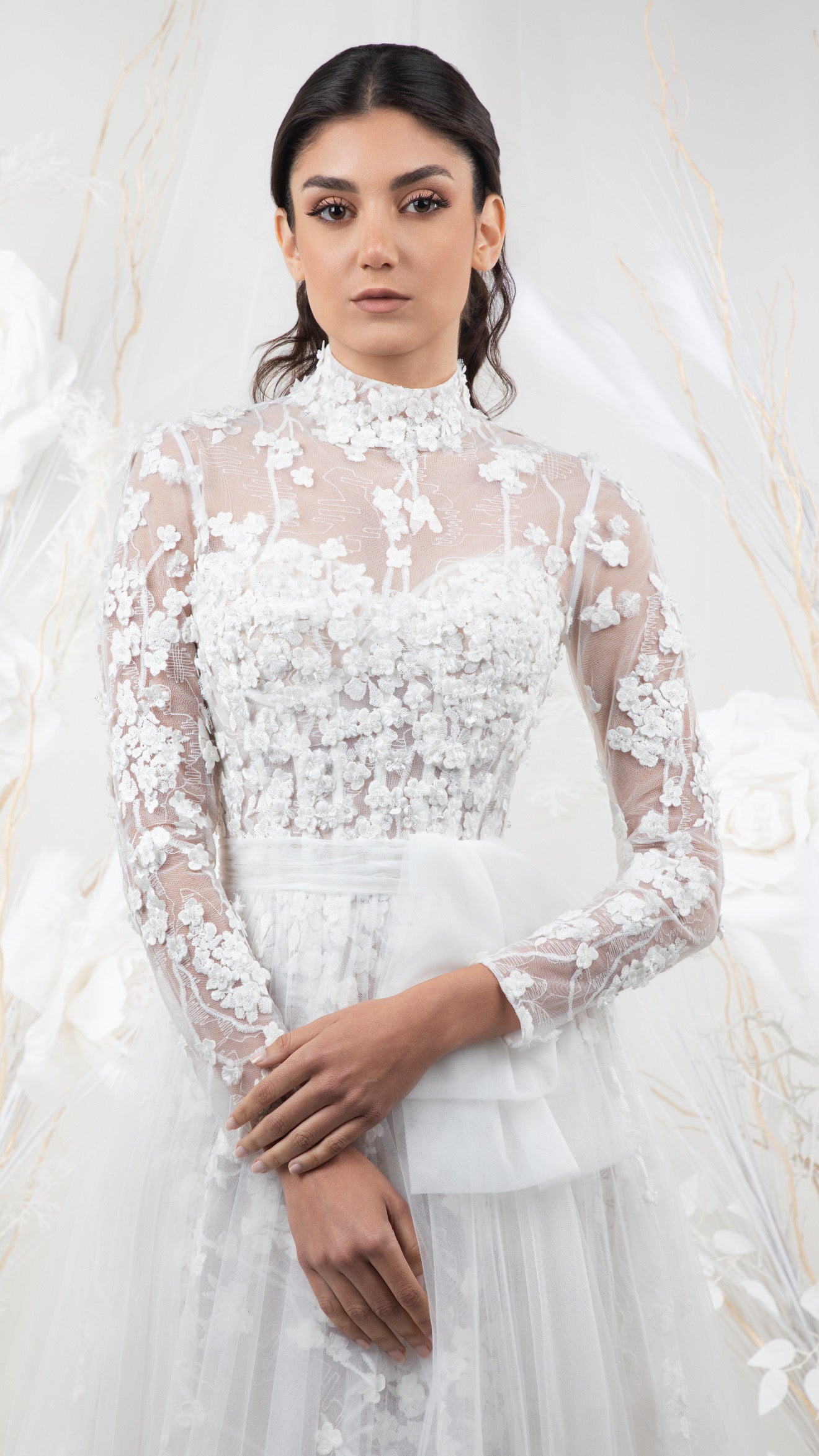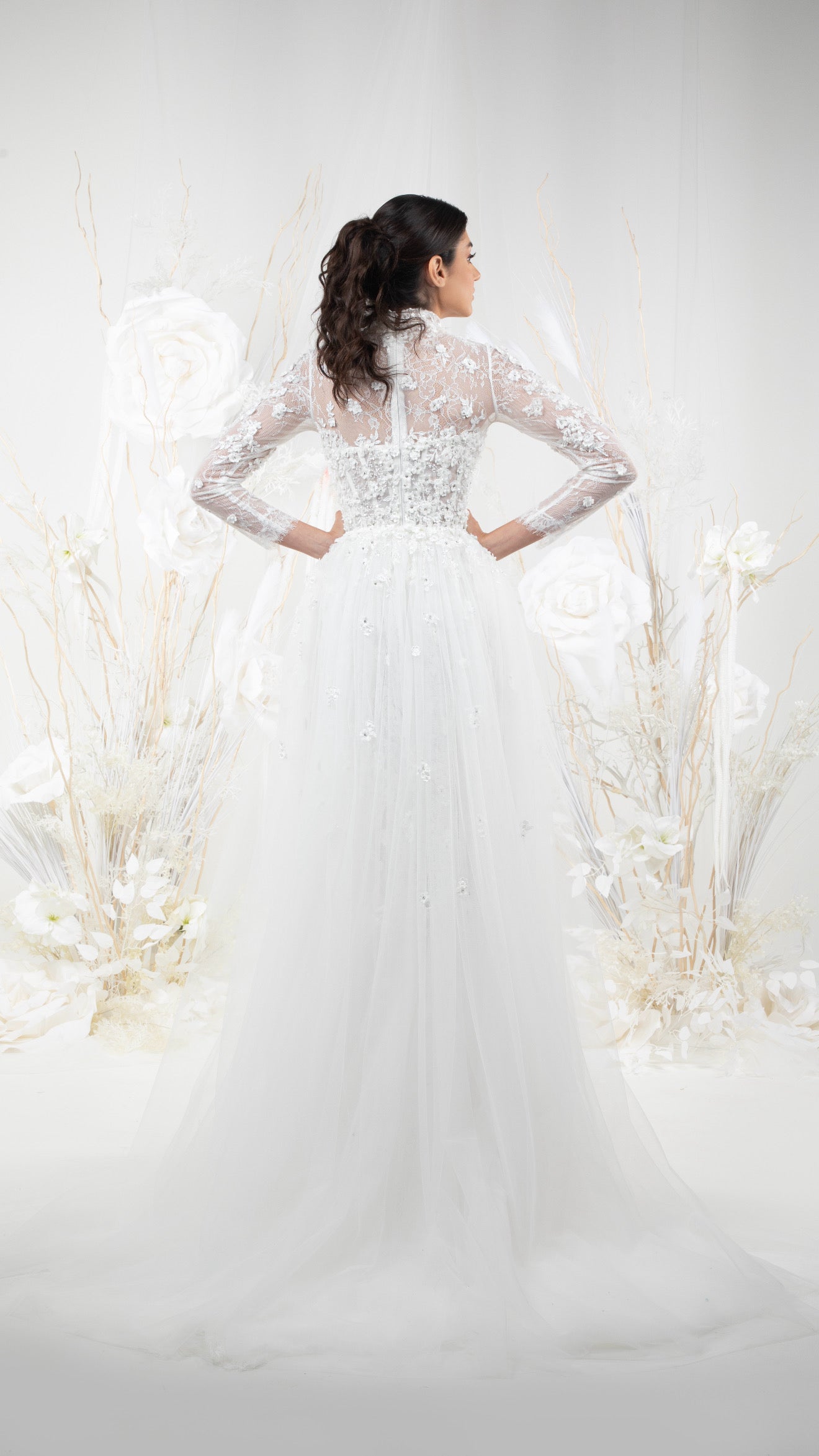 Off-Shoulder A-Line Gown with Pleated Tulle