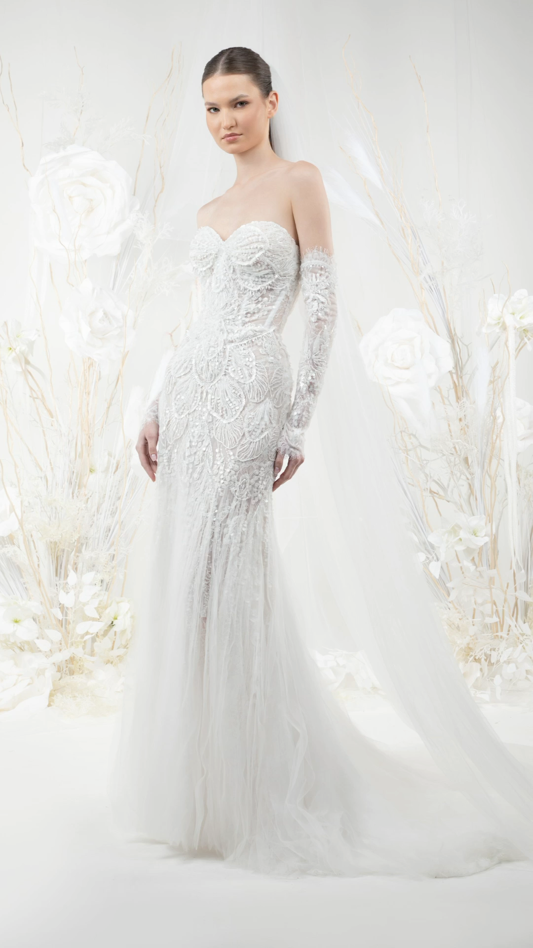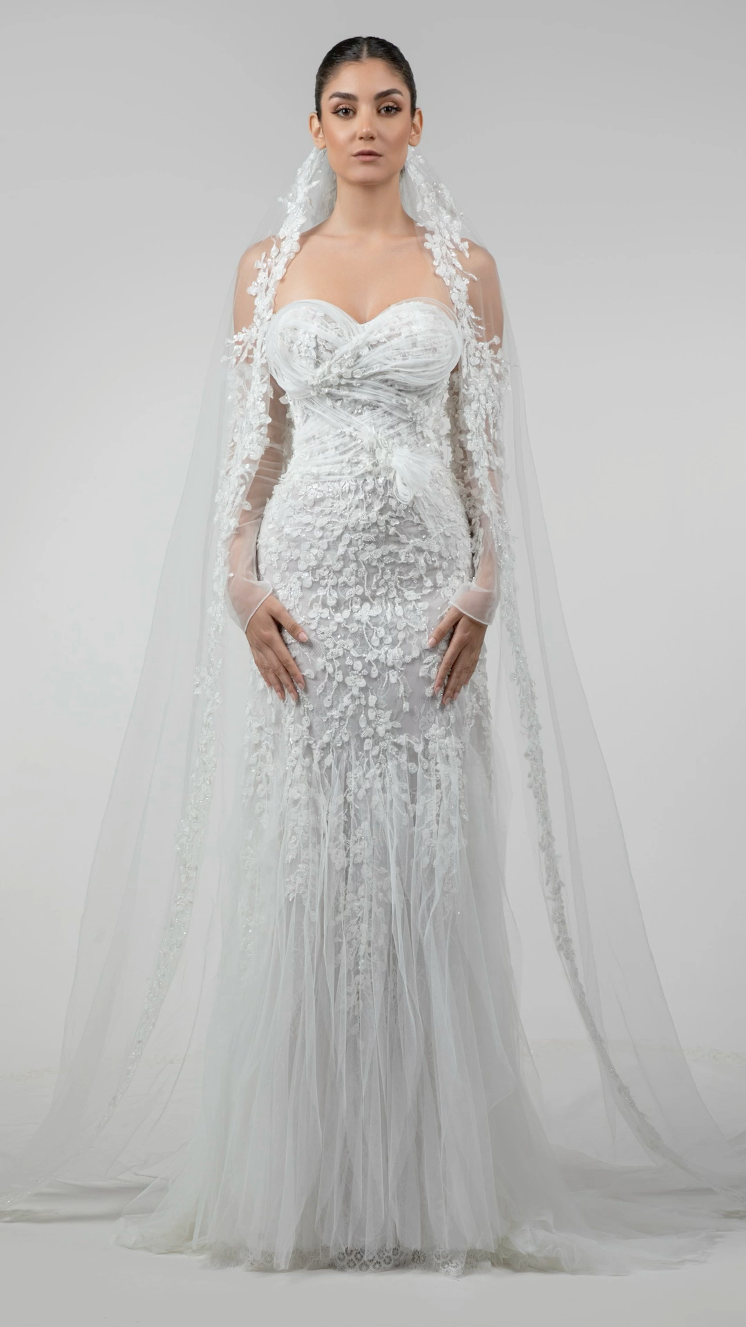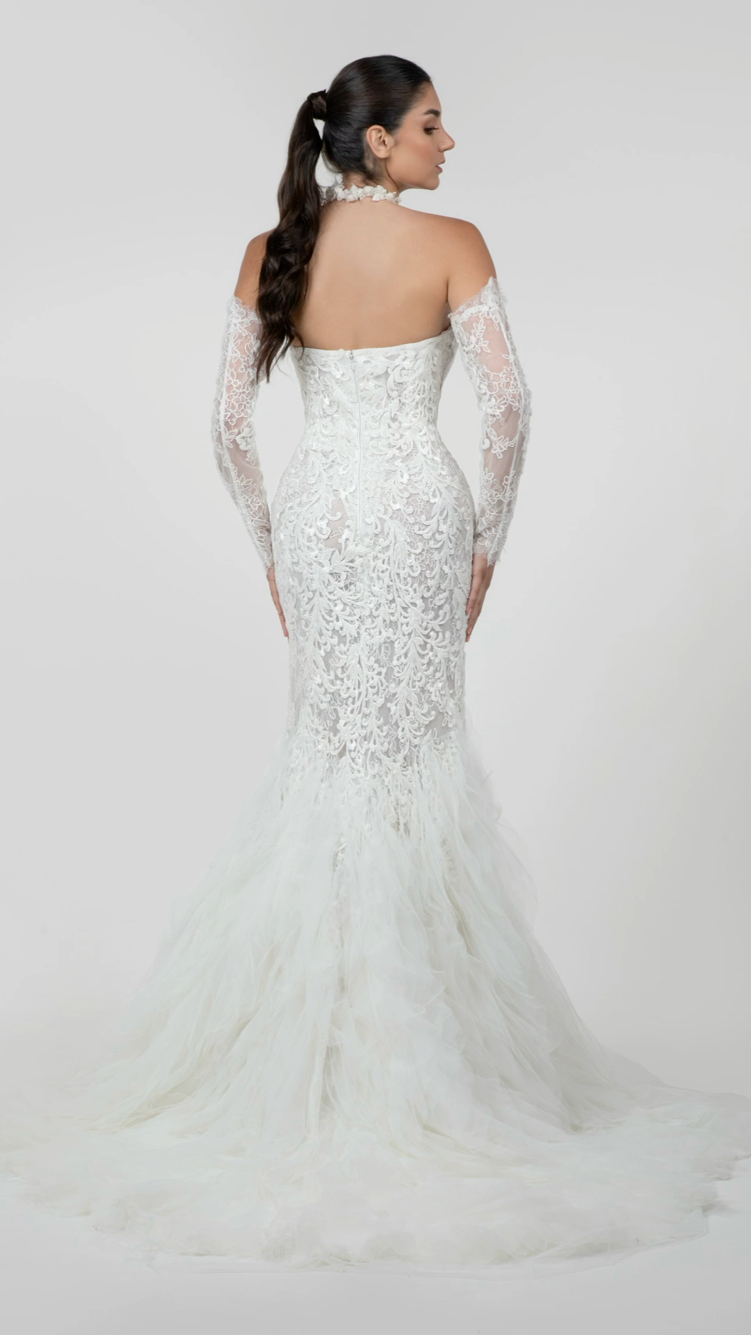 Sweetheart Lace Mermaid Gown with Organza Drapes