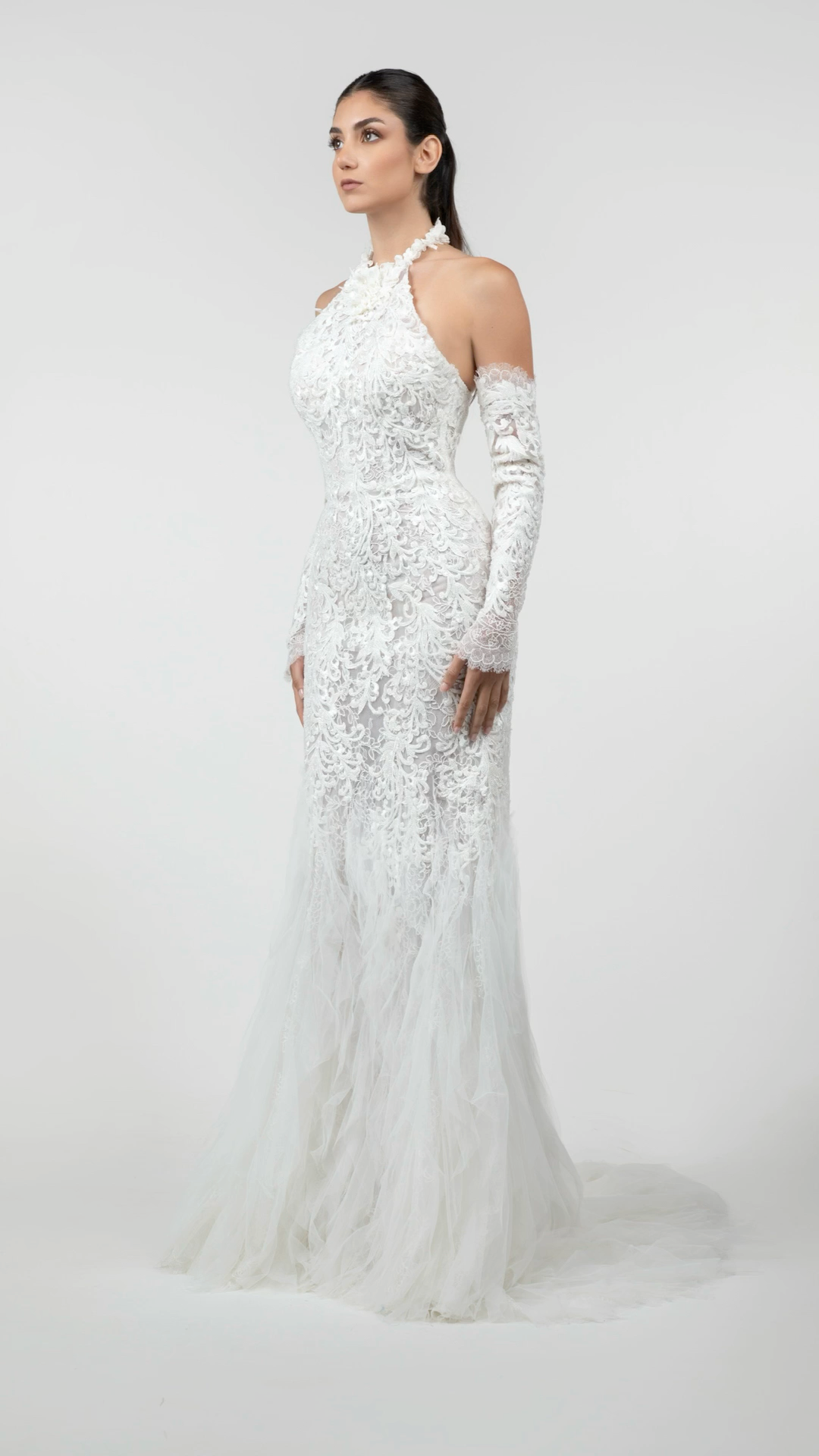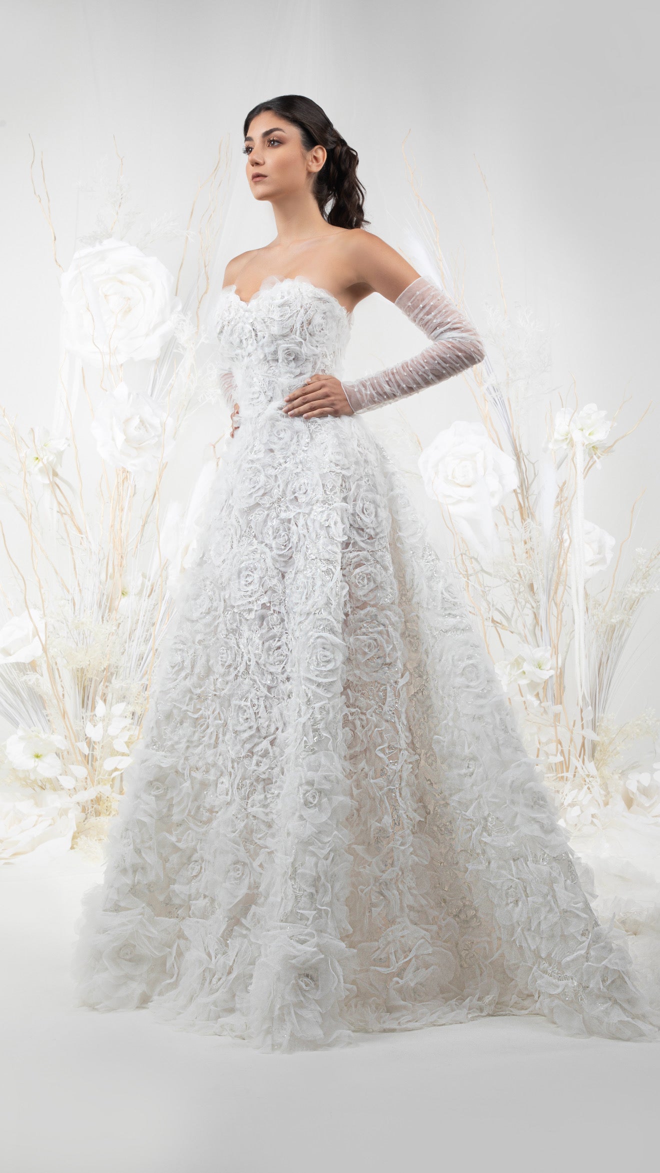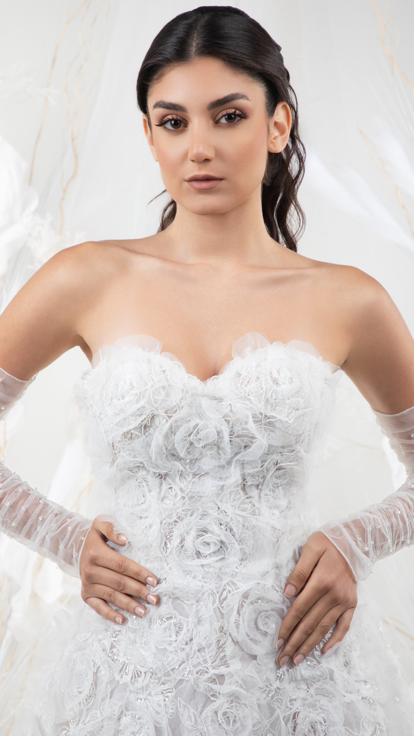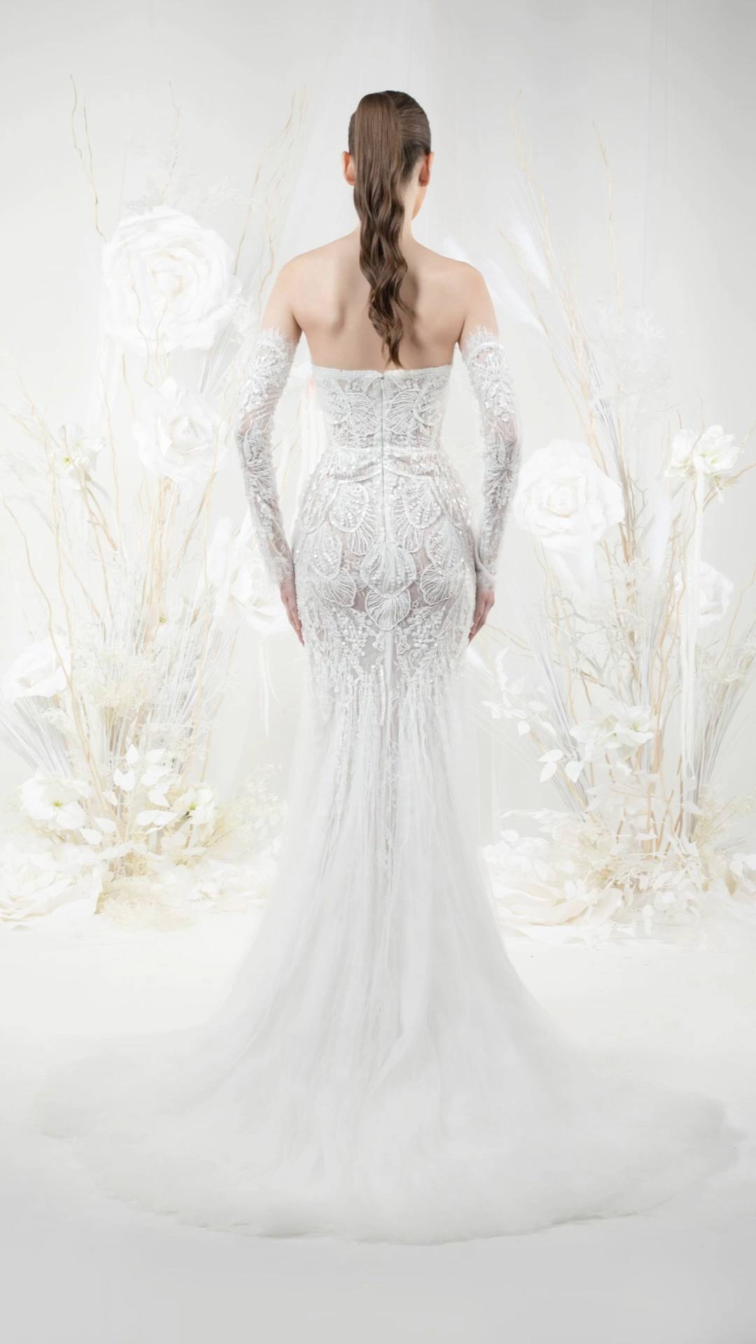 Sweetheart Lace Mermaid Gown with Organza Drapes