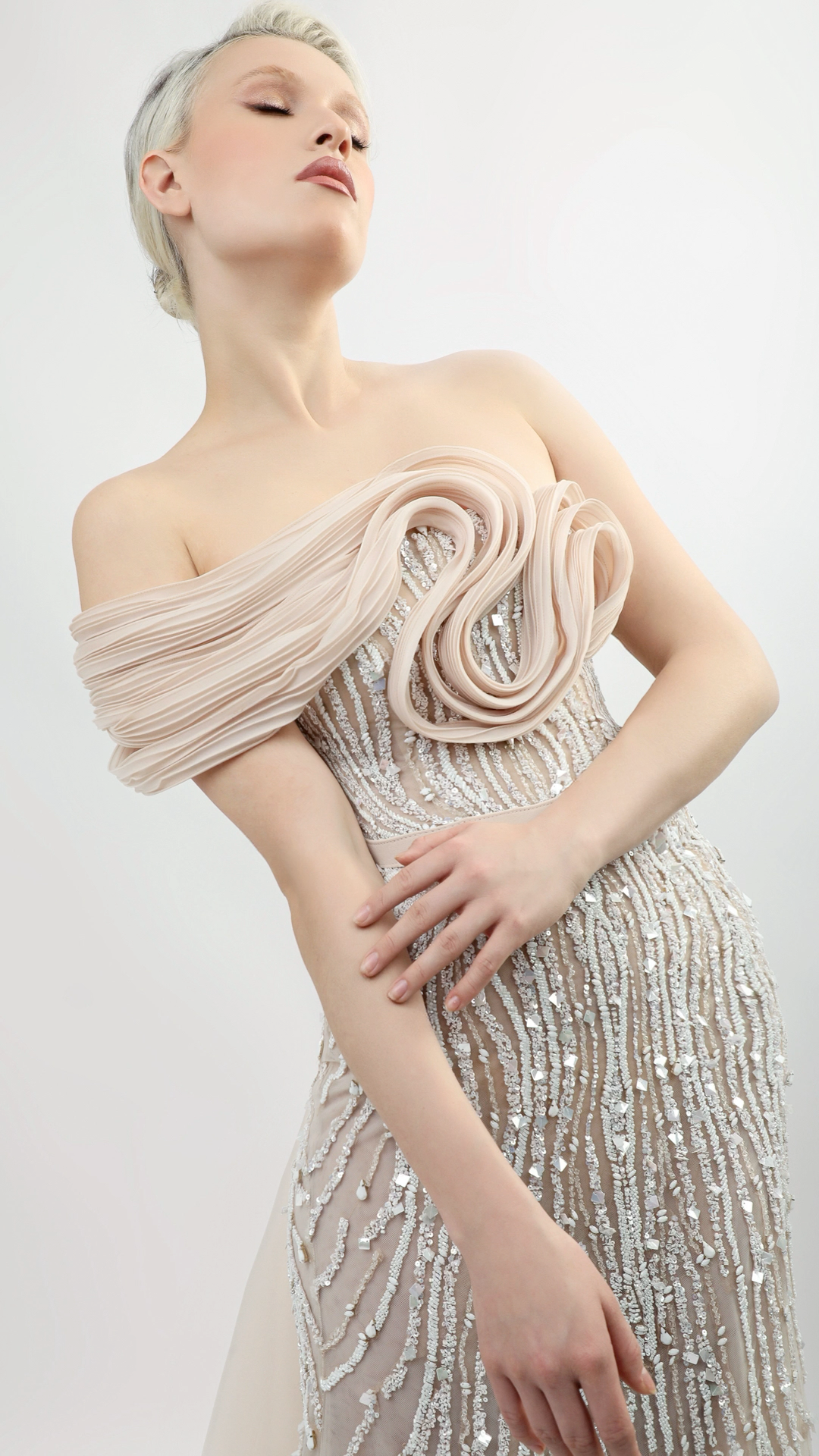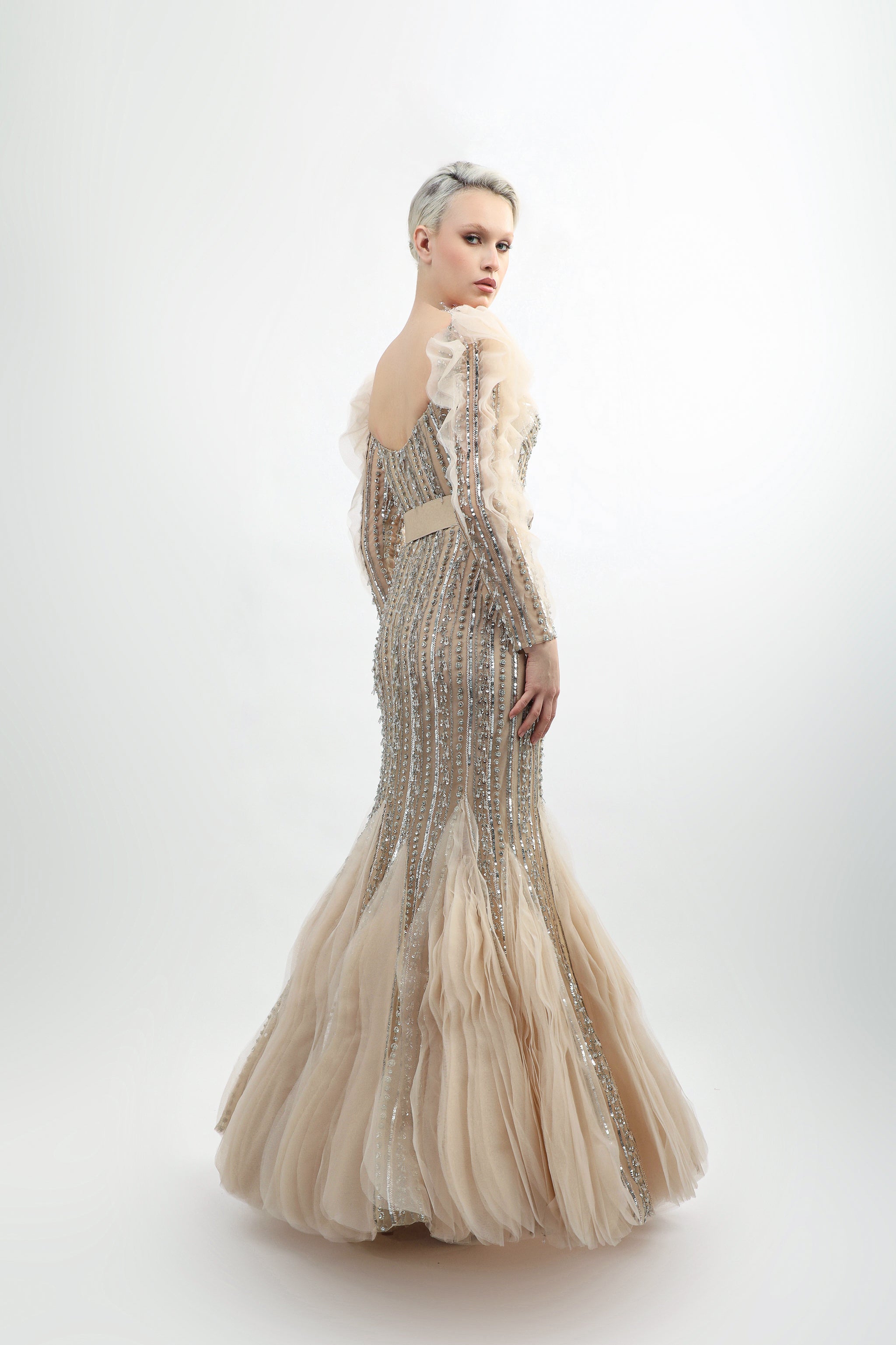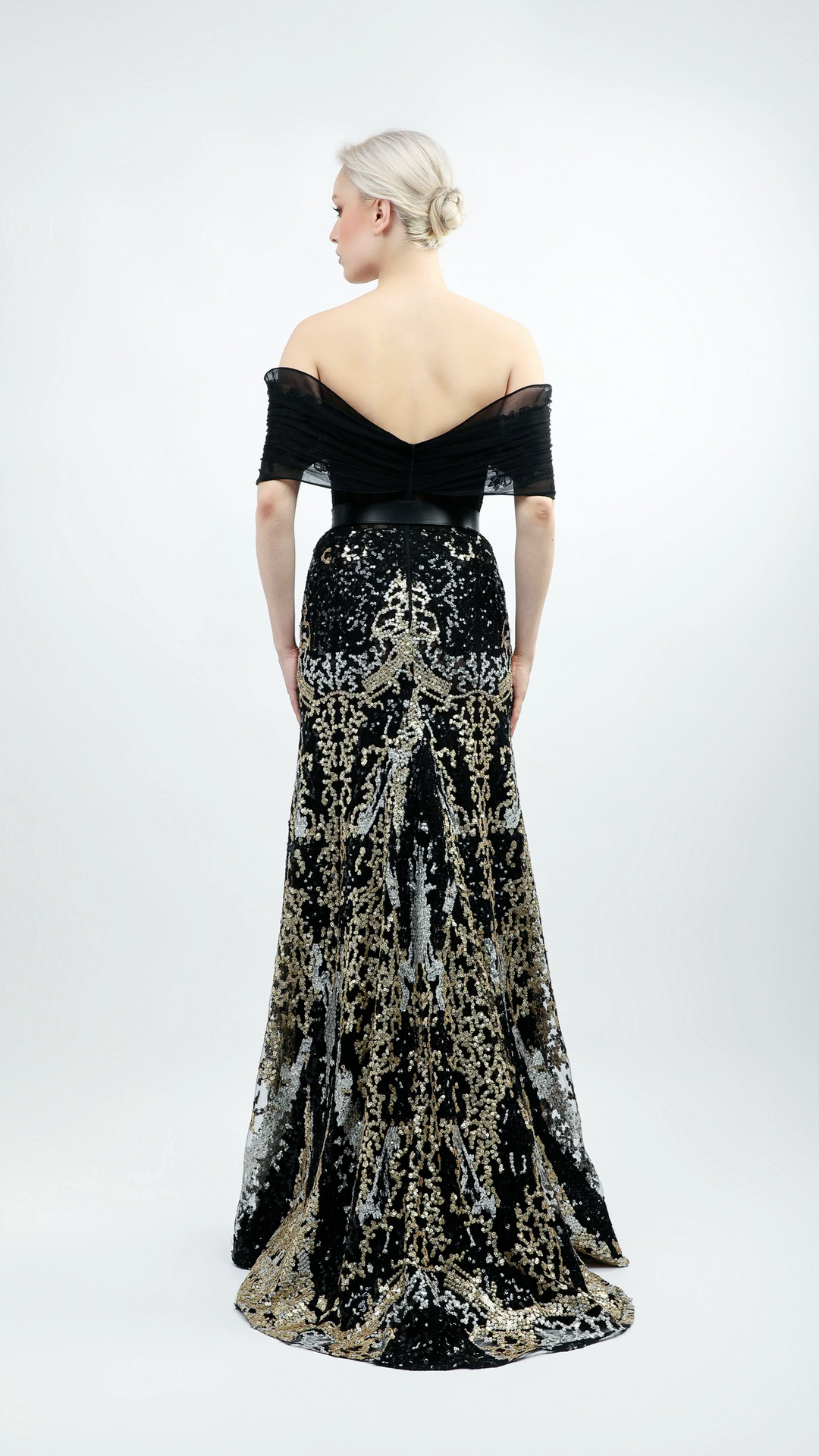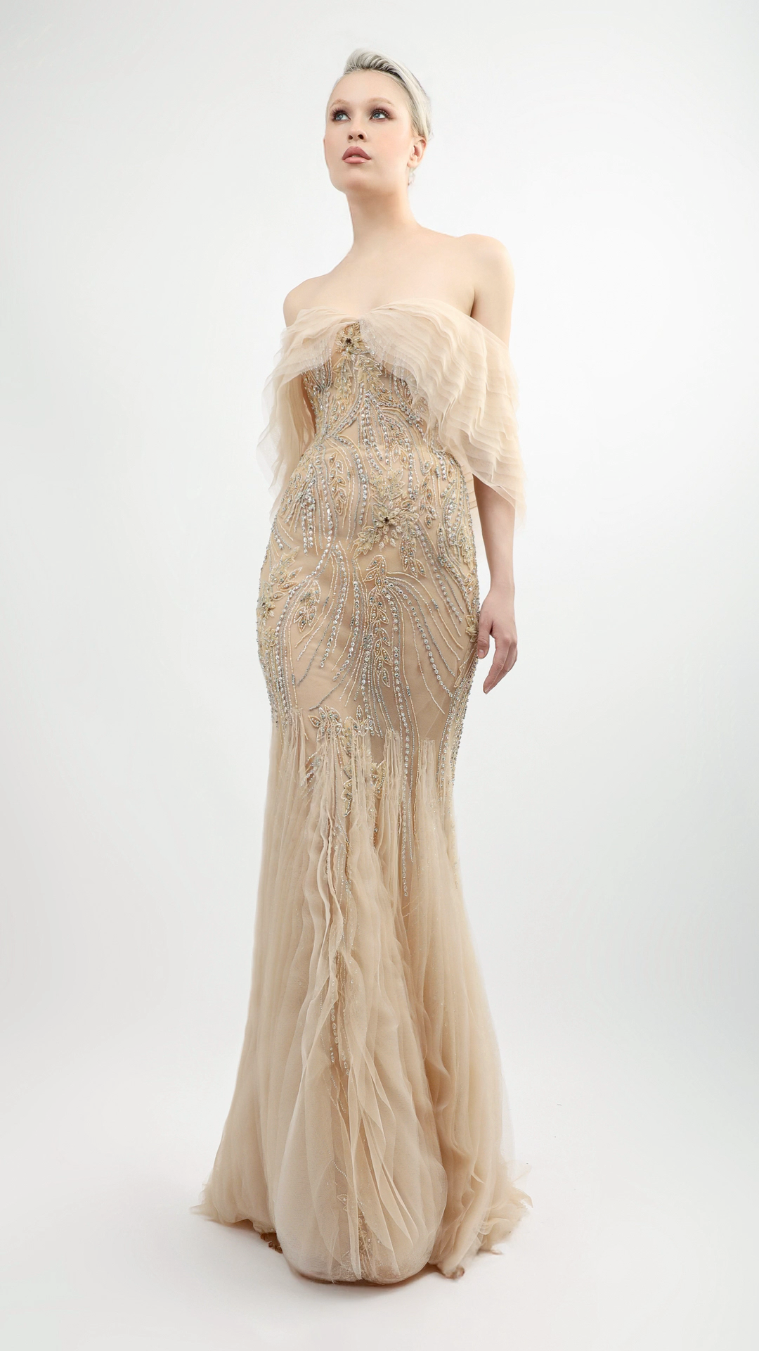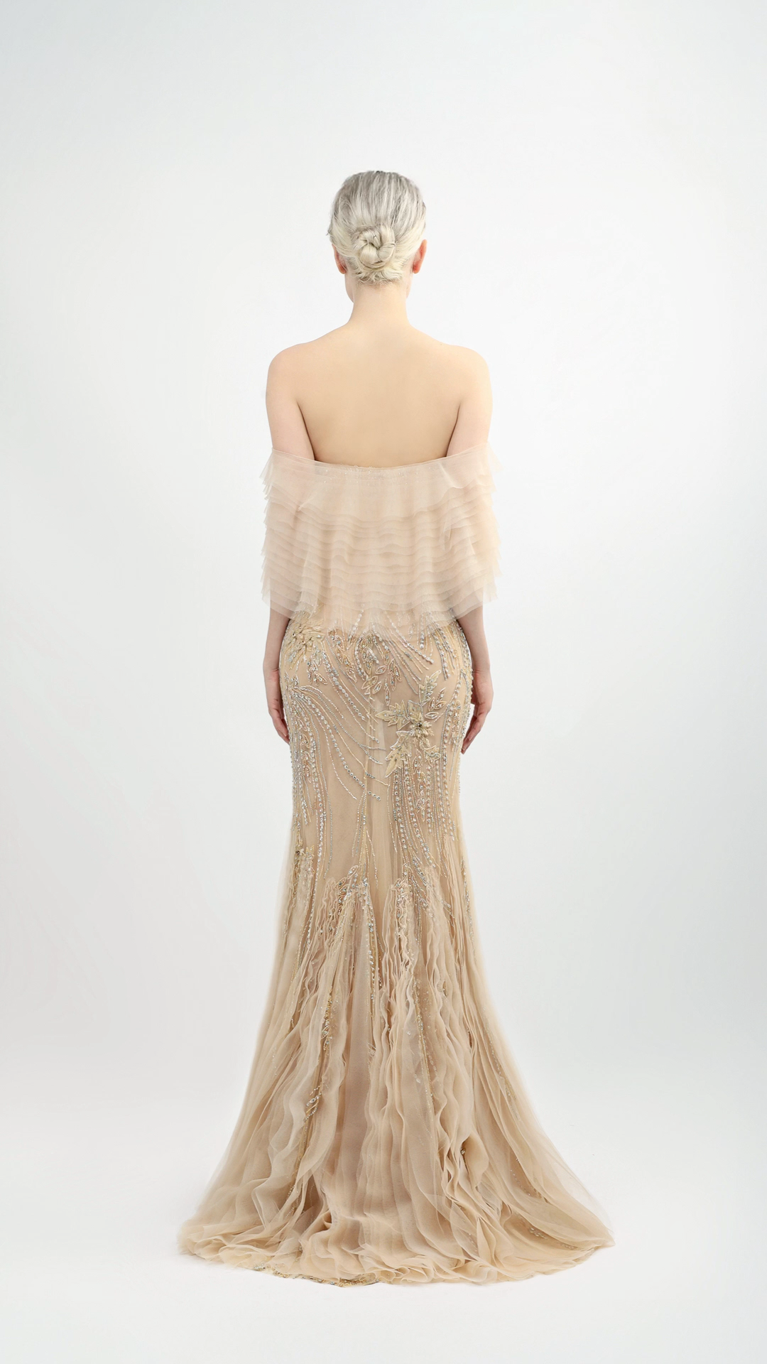 Hand-Embroidered Off-Shoulder Tulle Gown