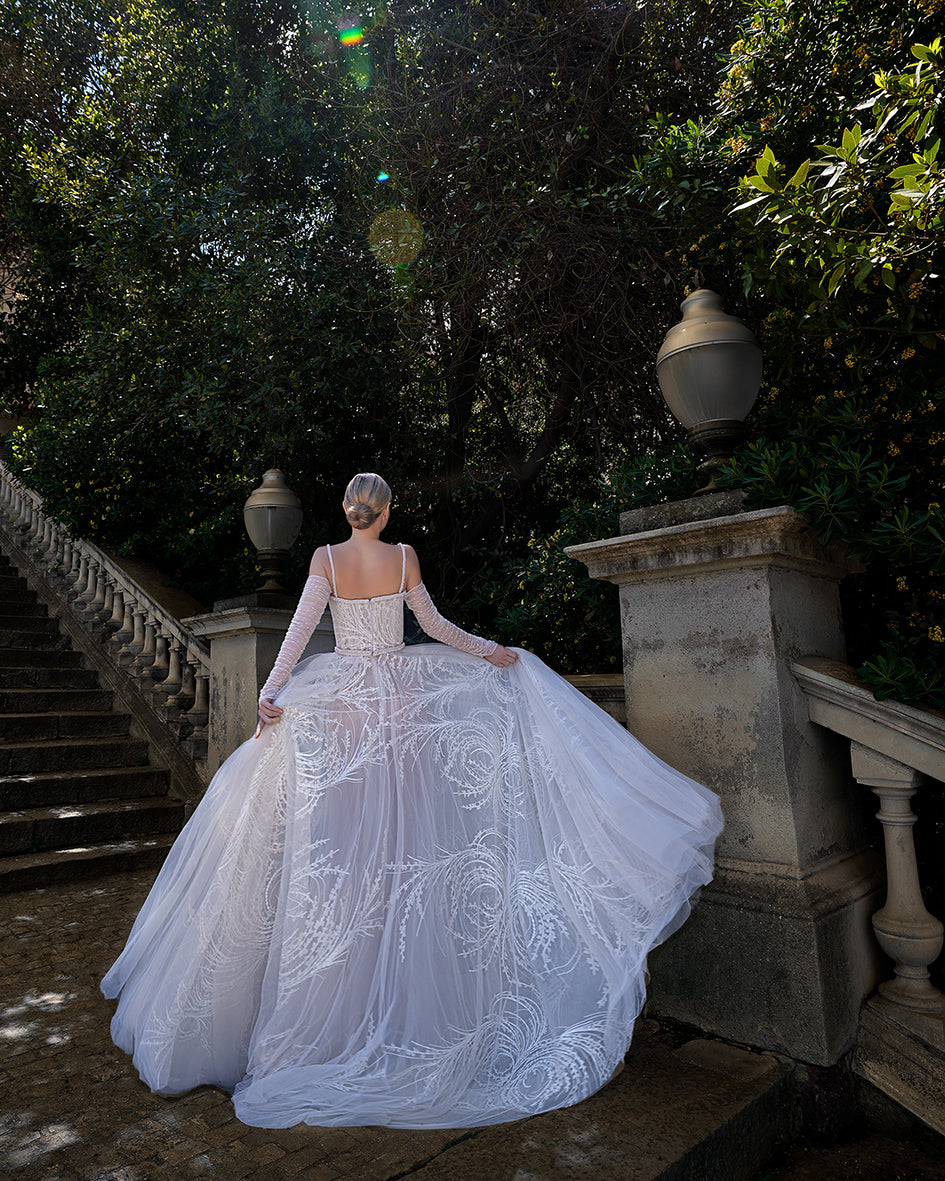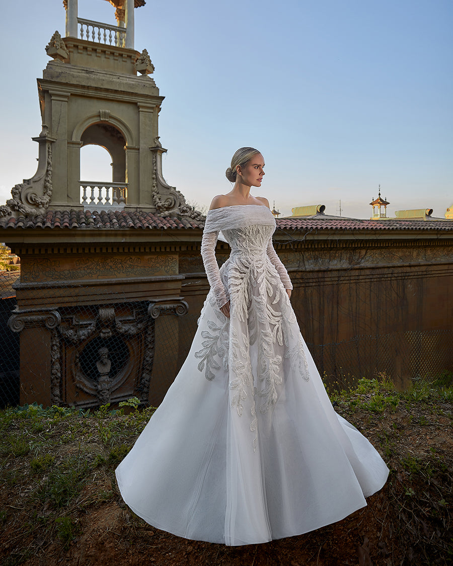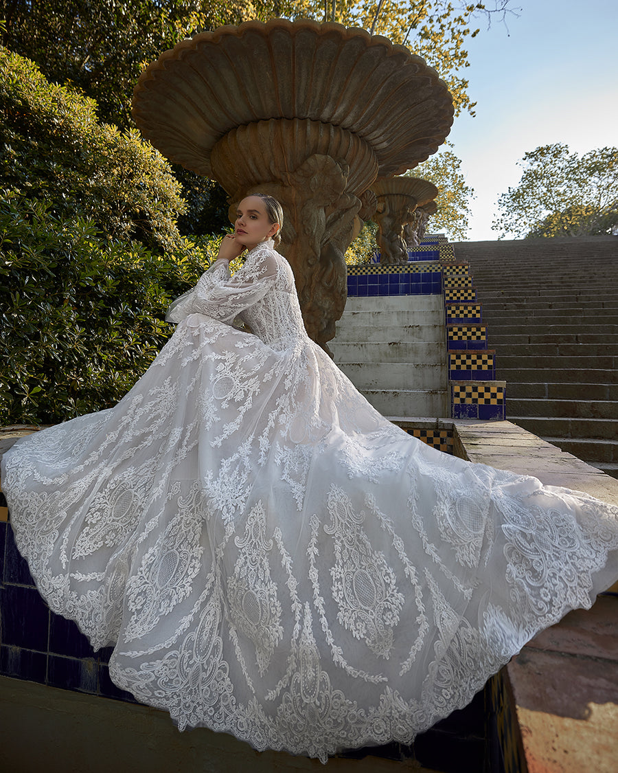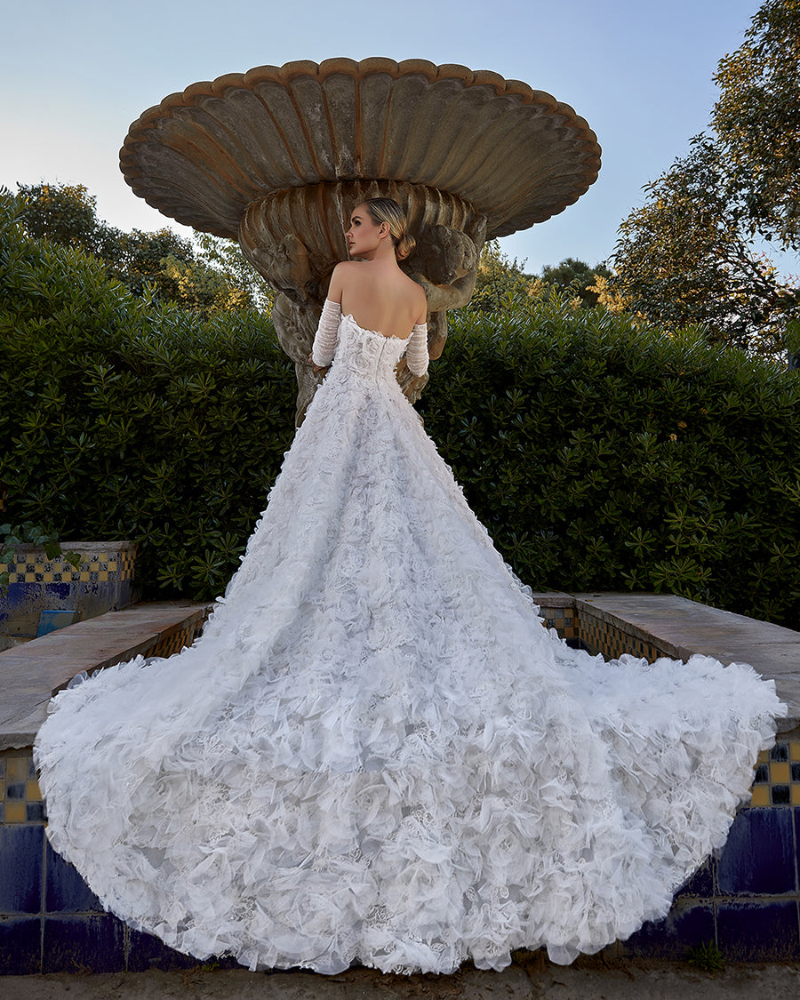 Fully Embroidered Tulle Bridal Gown with 3D Floral Cape
