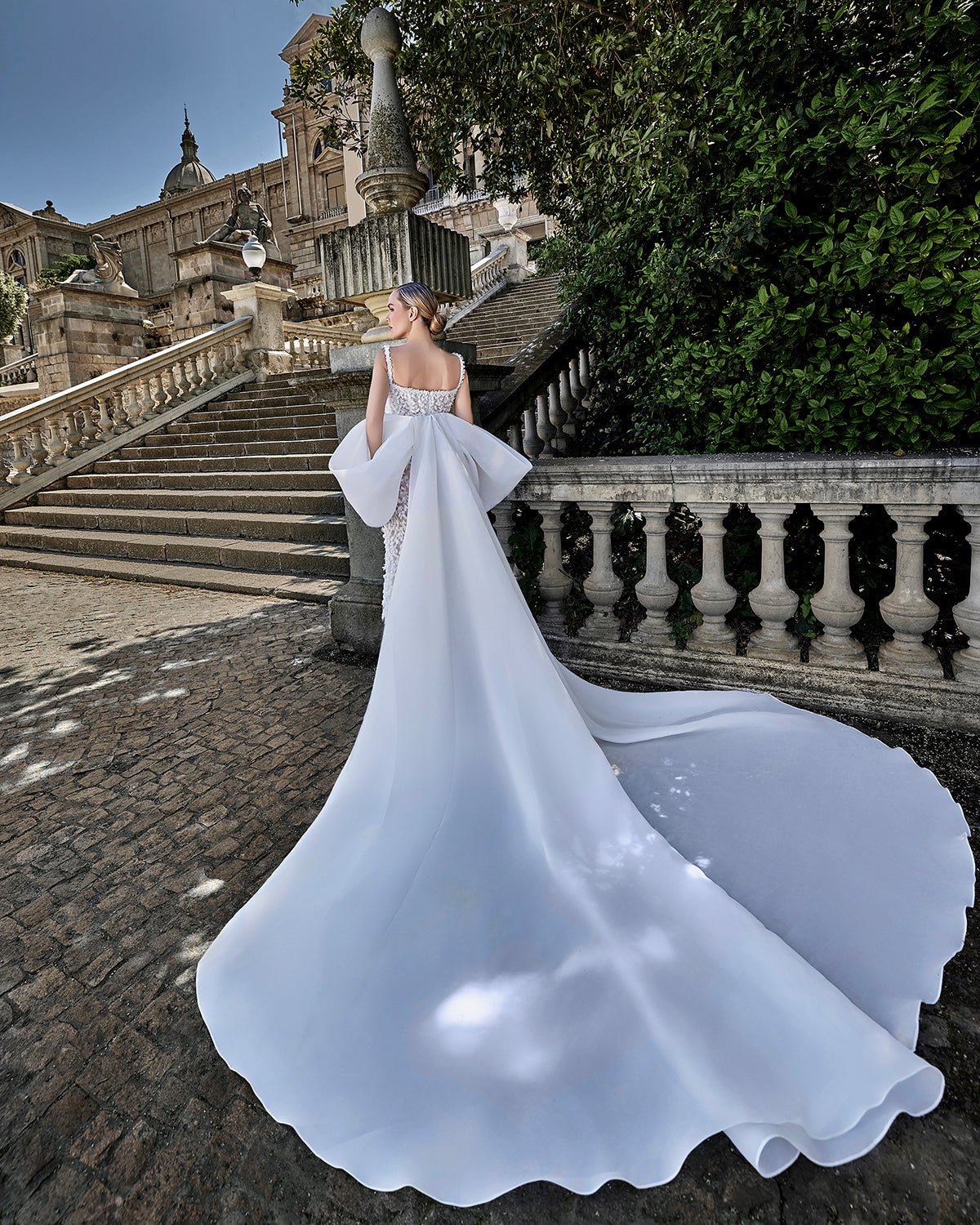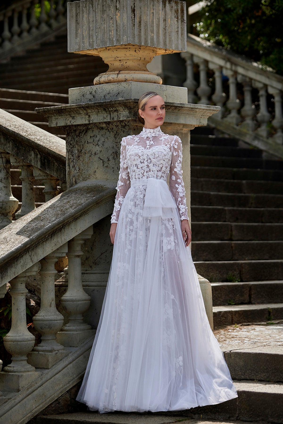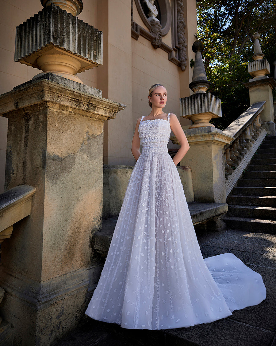 Fully Embroidered Tulle Bridal Gown with 3D Floral Cape