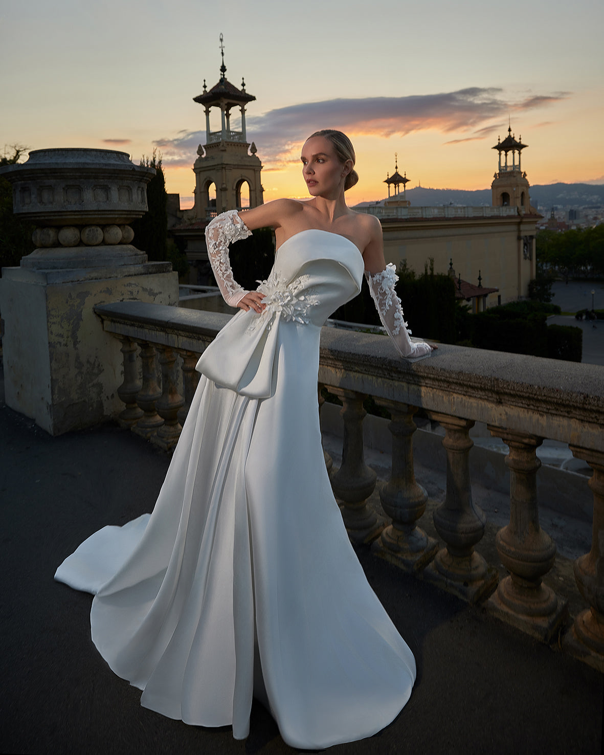 Crepe Sweetheart Gown with Mikado Embroidered Jacket