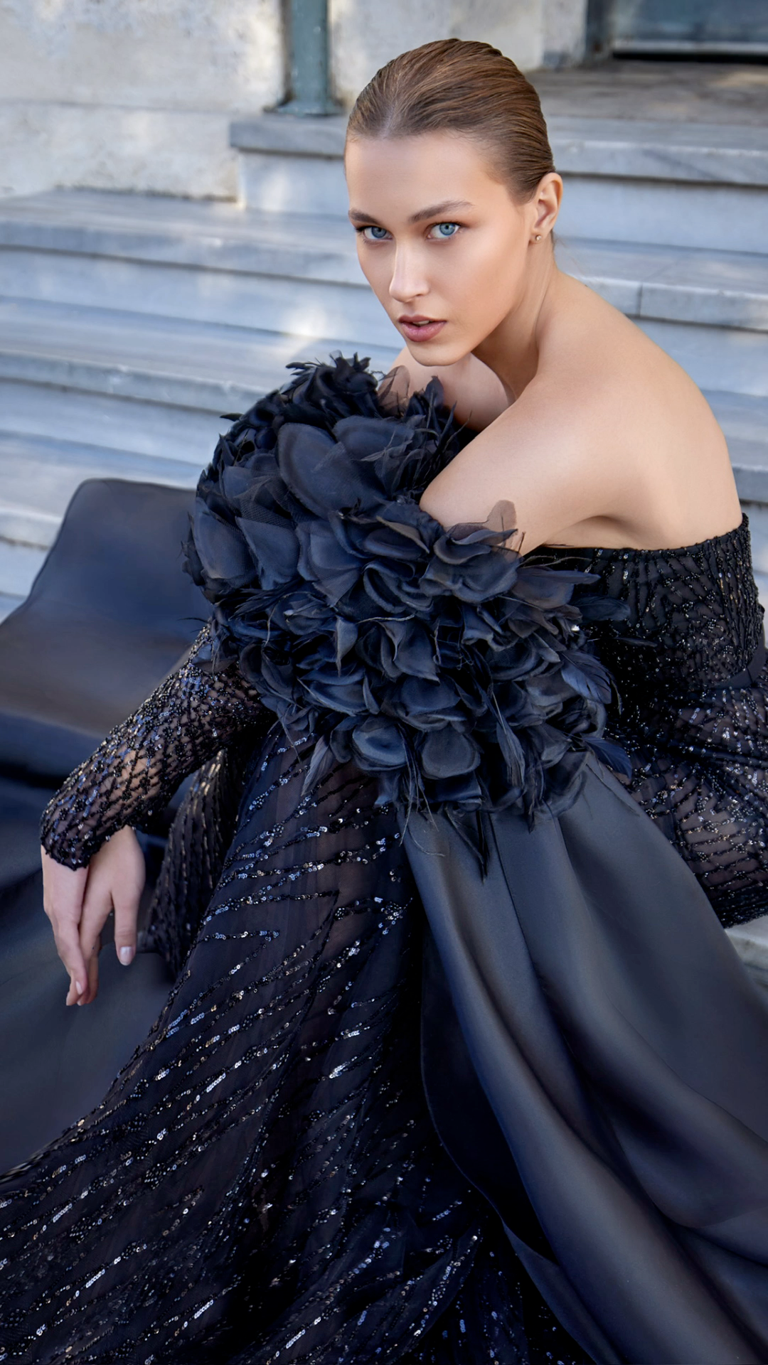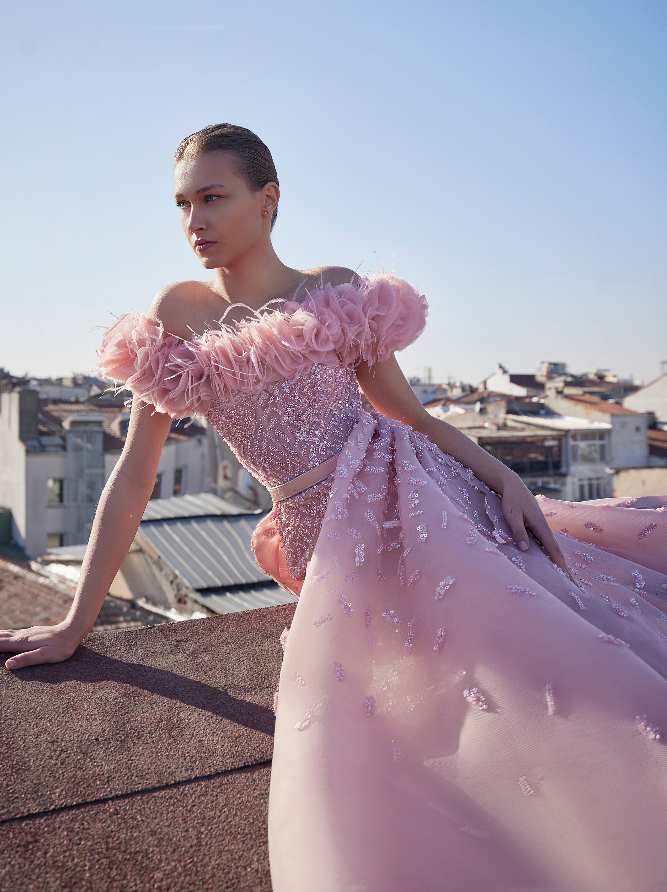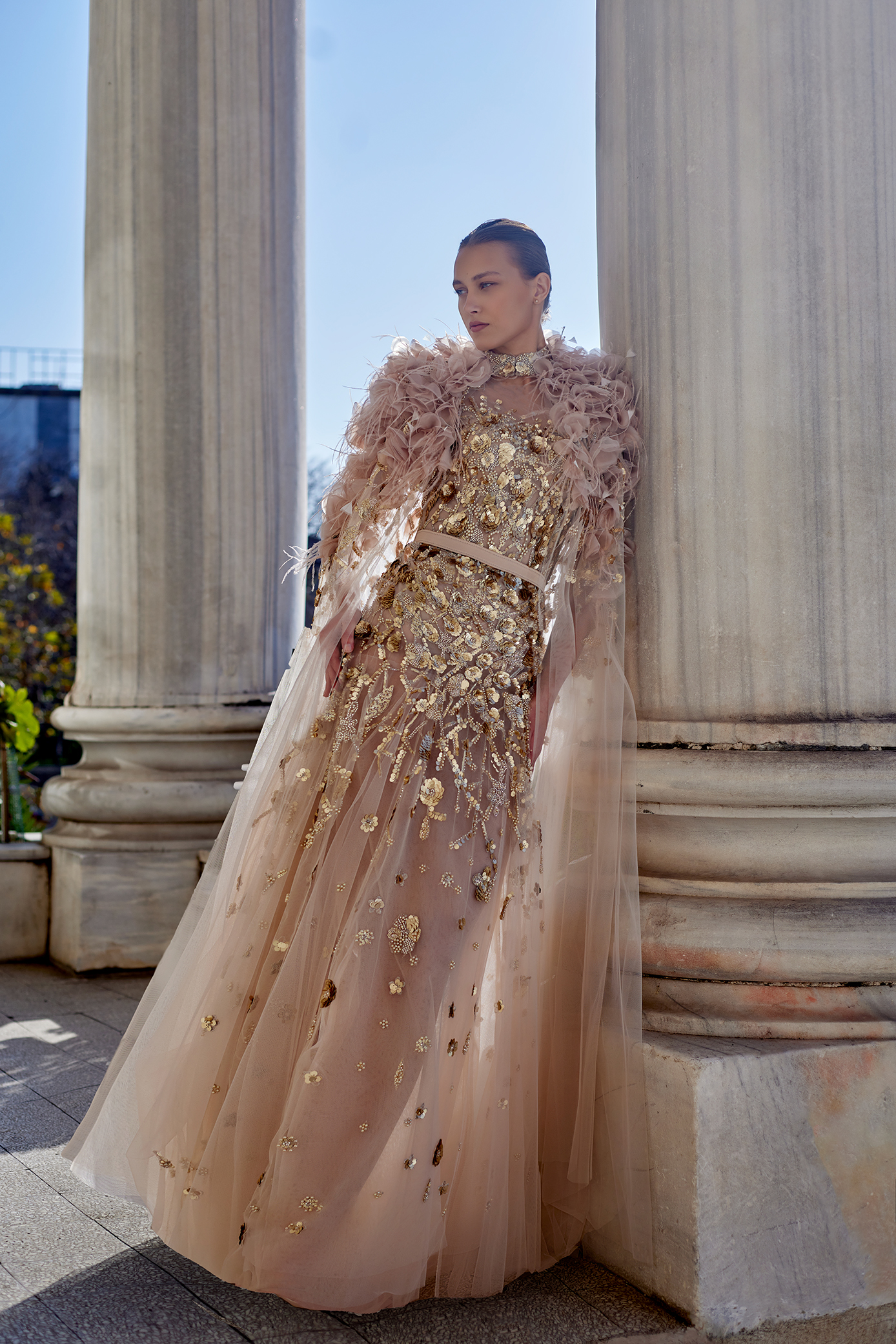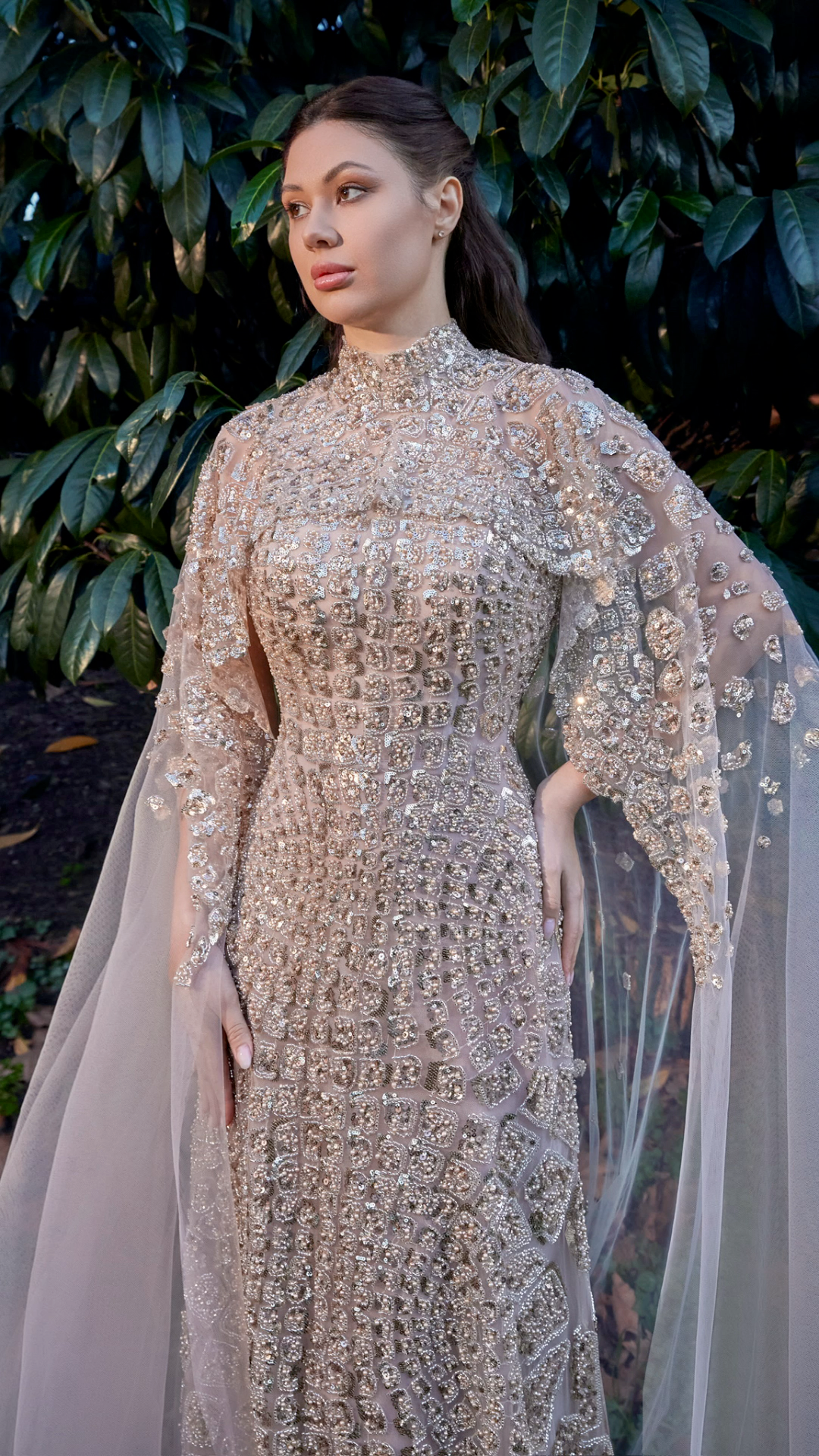 Fully Embroidered Tulle Bridal Gown with 3D Floral Cape