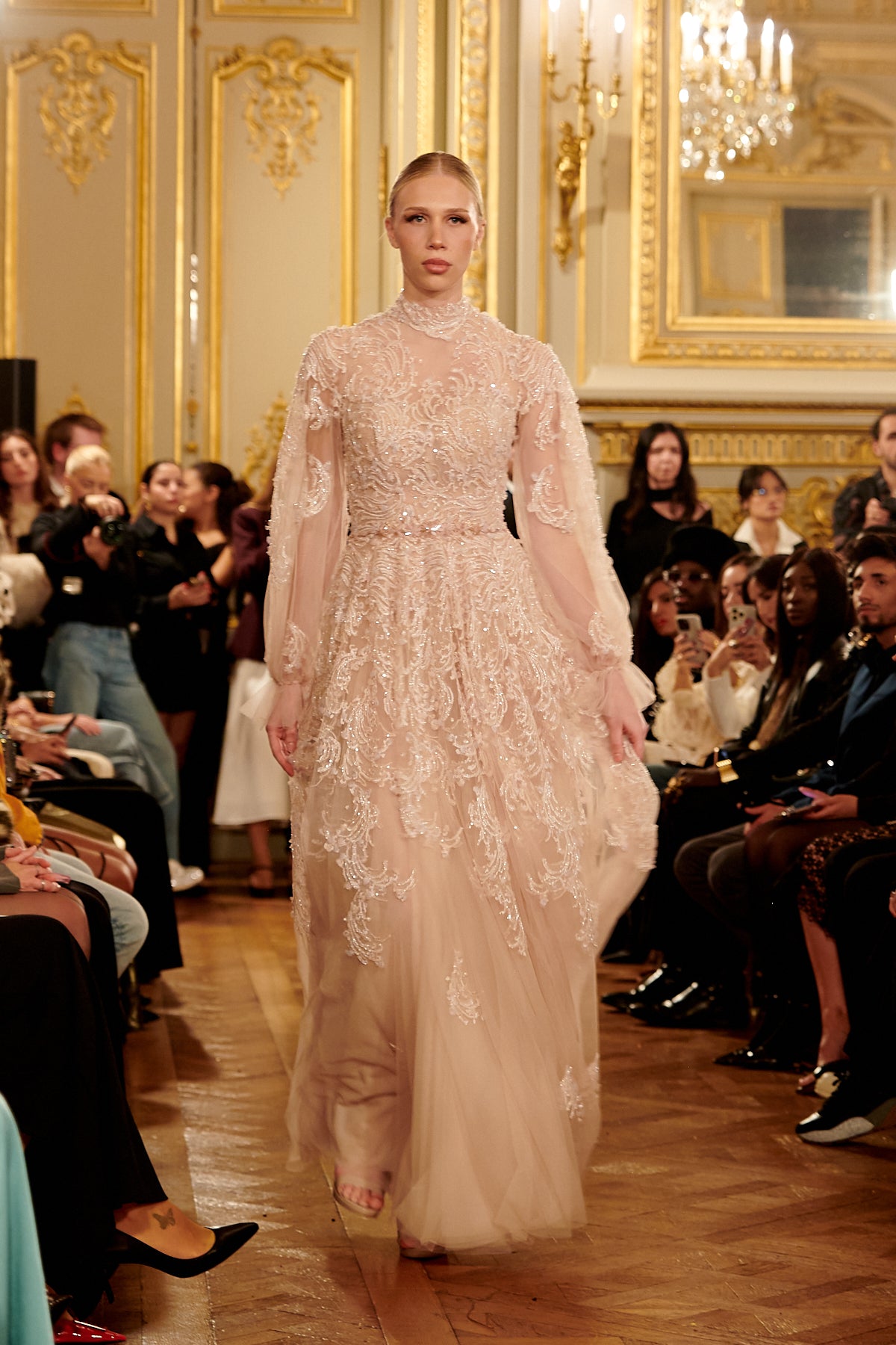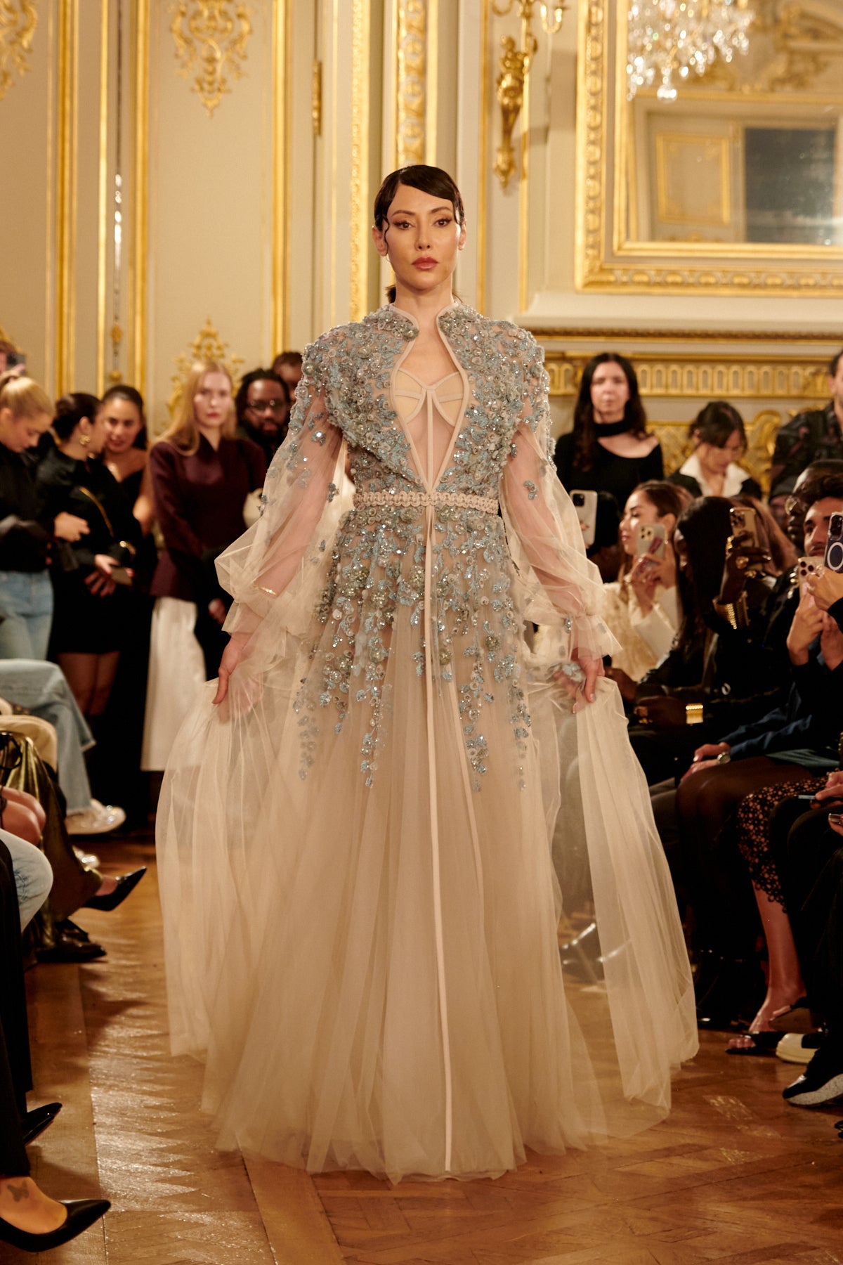 Flowy Embroidered Tulle Gown with Wide Sleeves