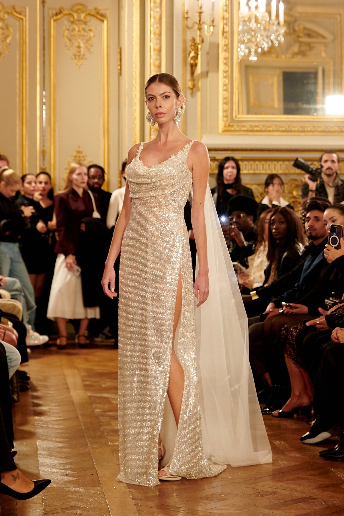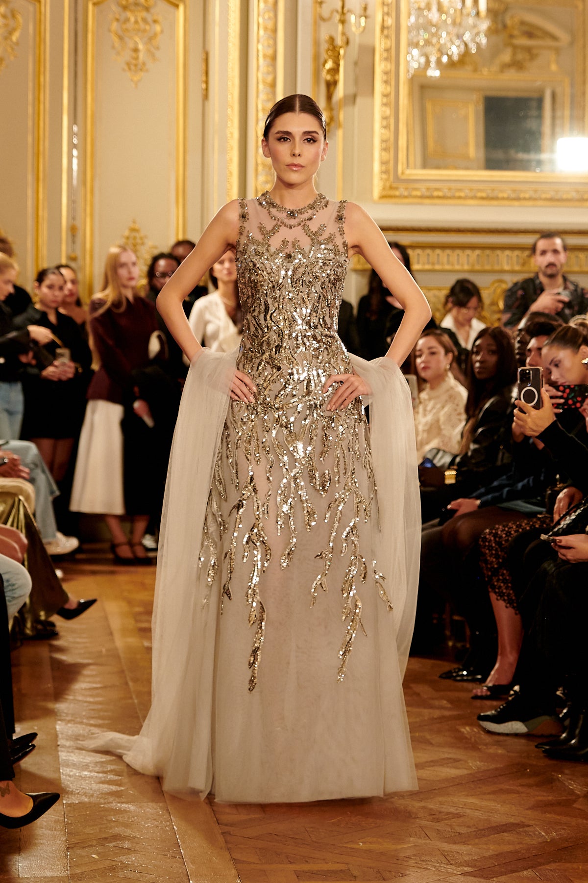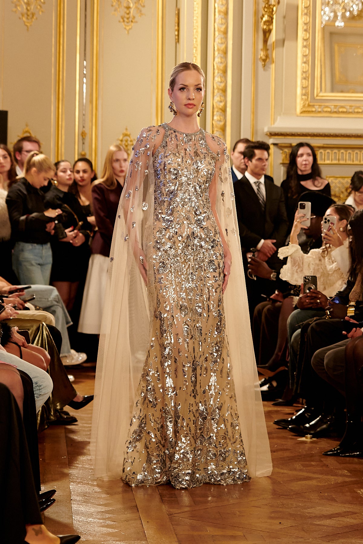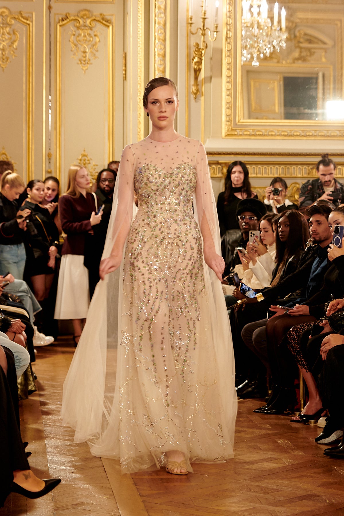 Fully Embroidered Tulle Gown with Cape