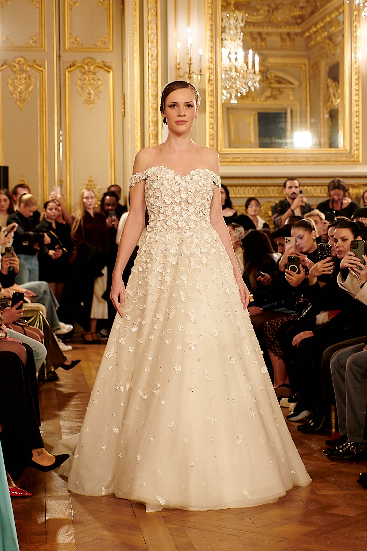 Fully Embroidered Tulle Bridal Gown with 3D Floral Cape